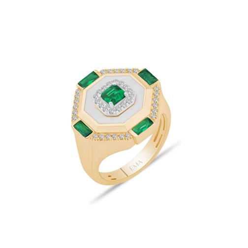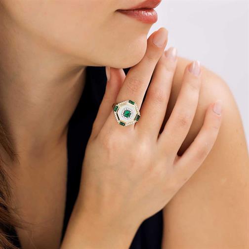Beyaz Mineli Baget Taşlı Tektaş Yüzük