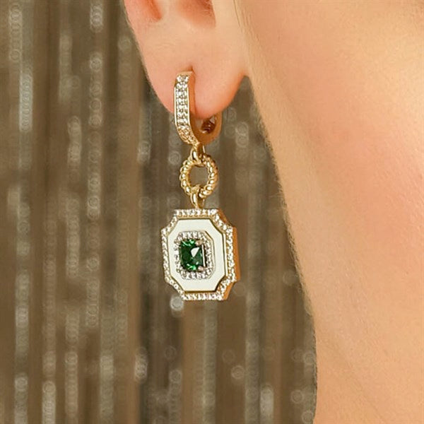 Beyaz Mineli Zümrüt Taşlı Küpe