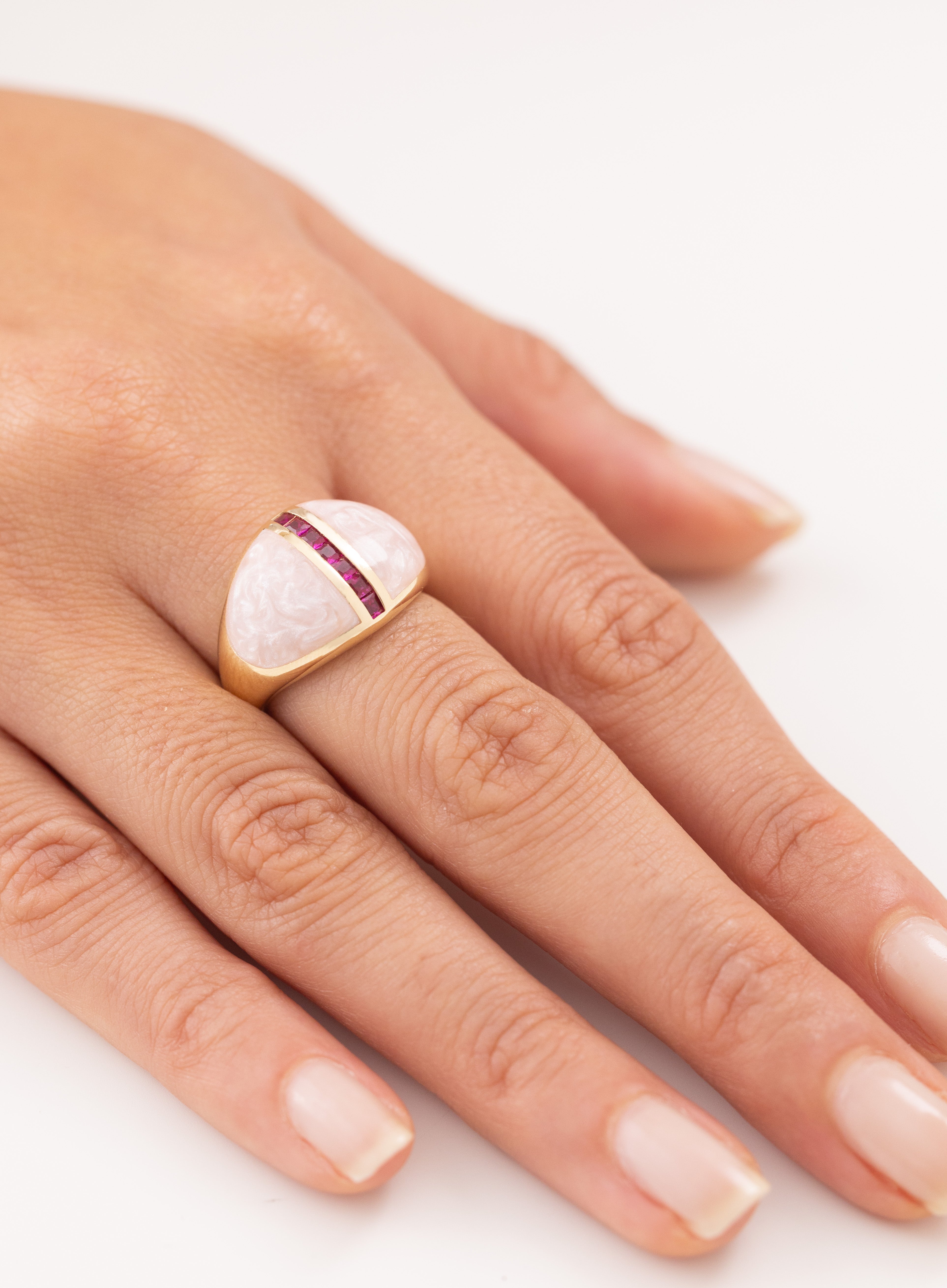 Cetaş Bombeli Sedef Üzeri Ruby Taşlı 14 Ayar Altın Yüzük