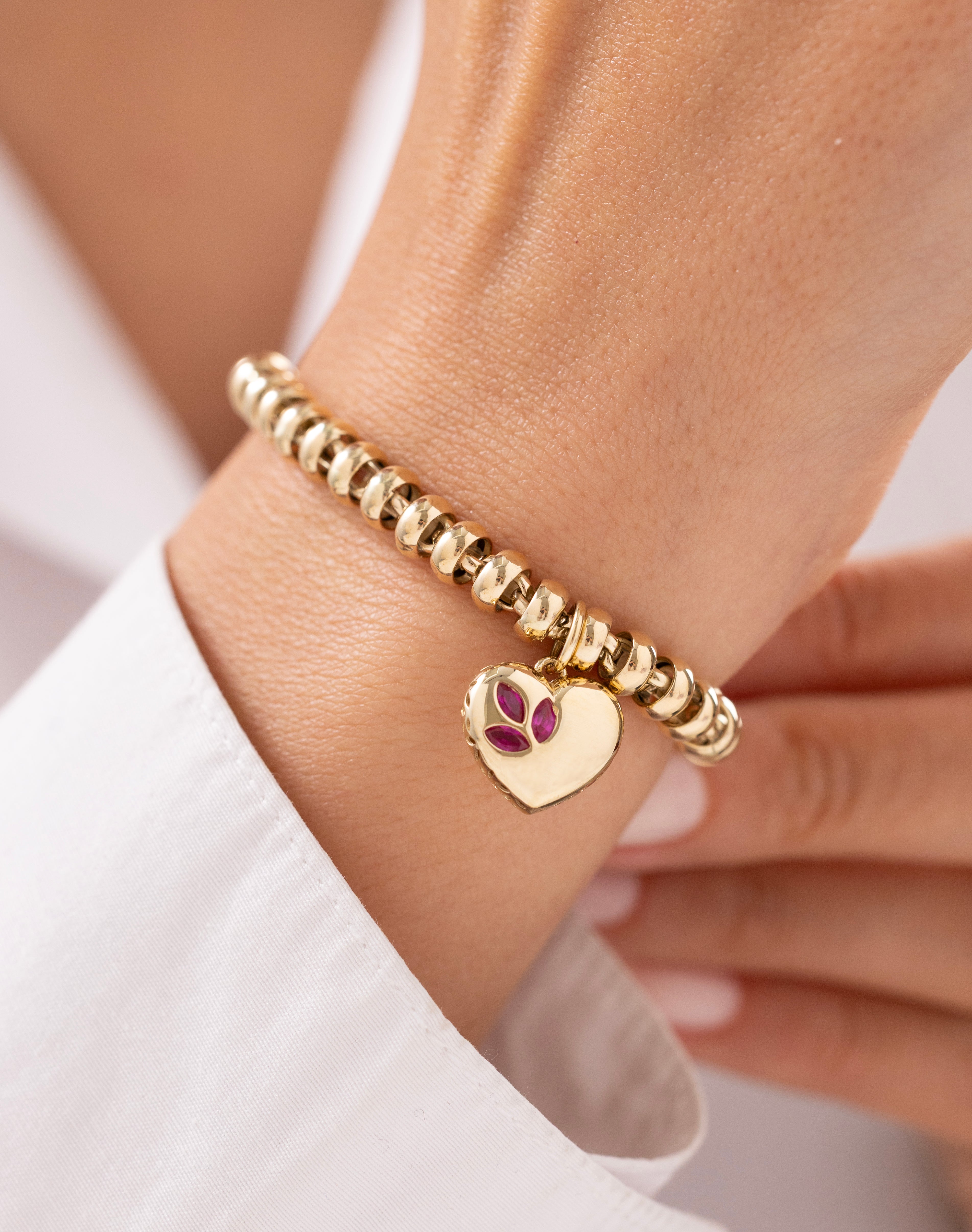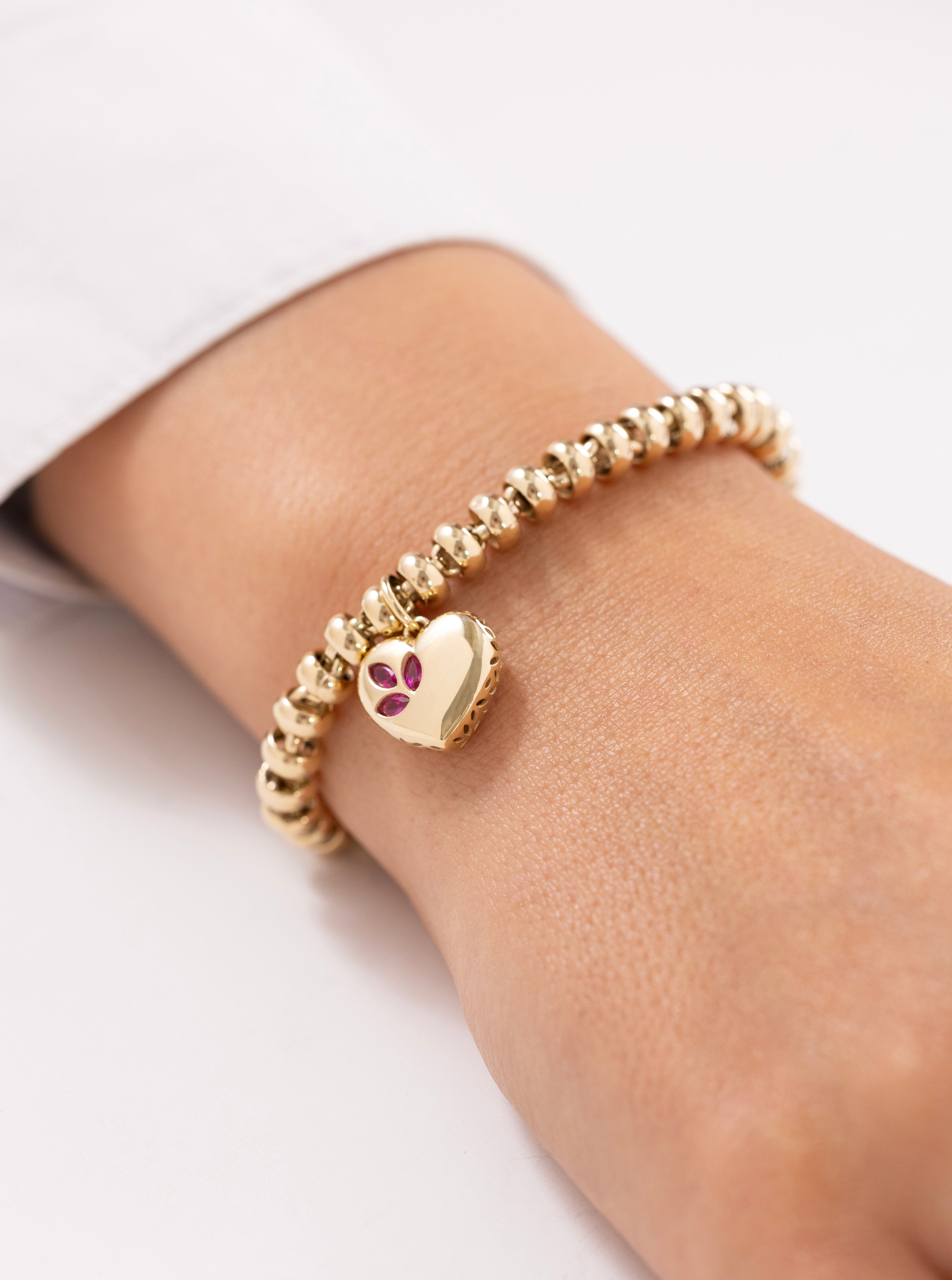 Cetaş Eterna Altın Kalp Charmlı 14 Ayar Altın Bileklik