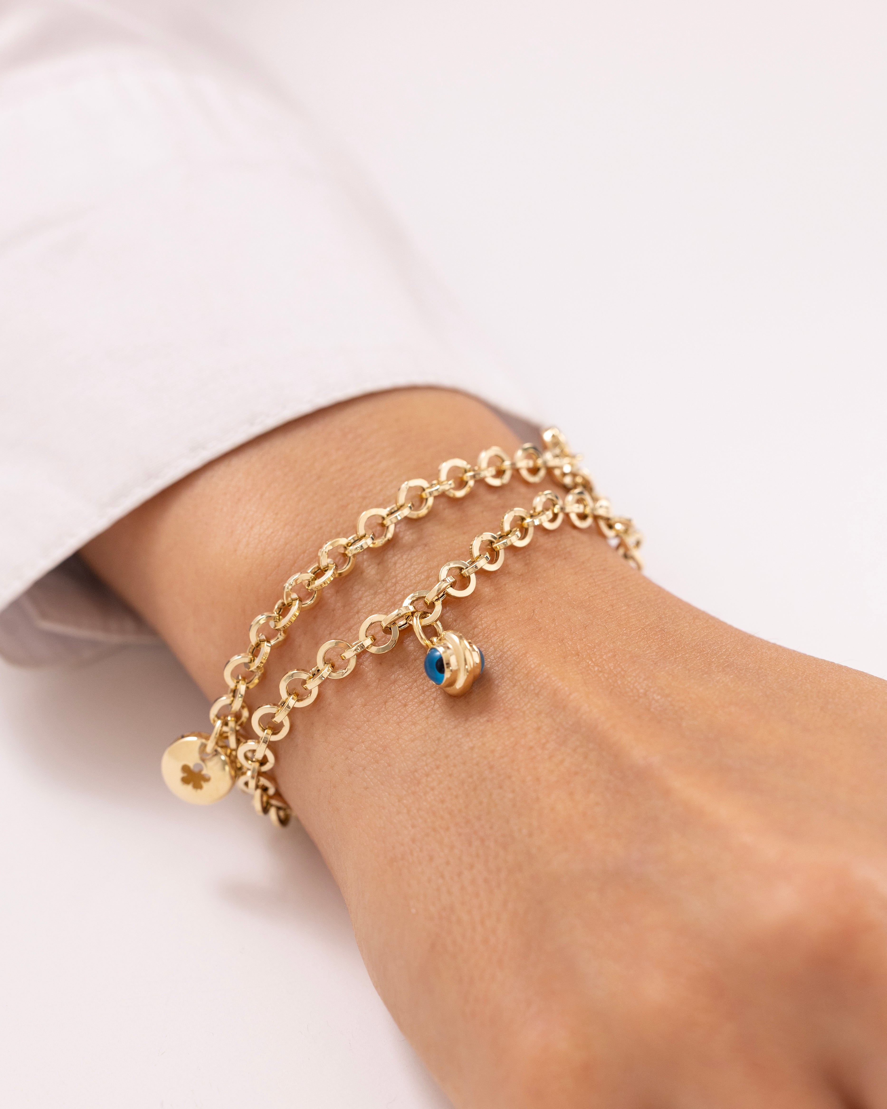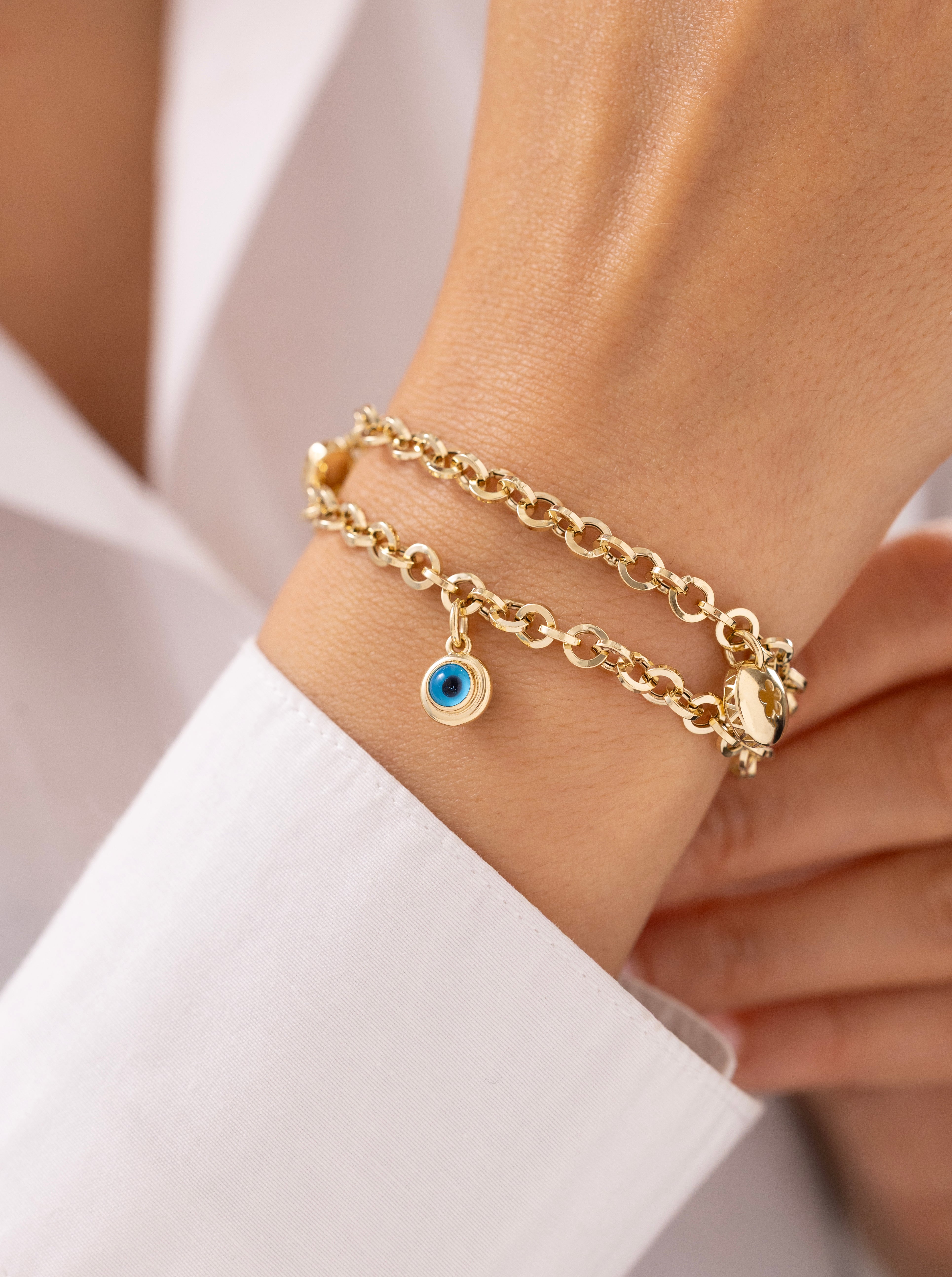 Cetaş Eterna Çift Sıra Nazar Boncuklu 14 Ayar Altın Bileklik
