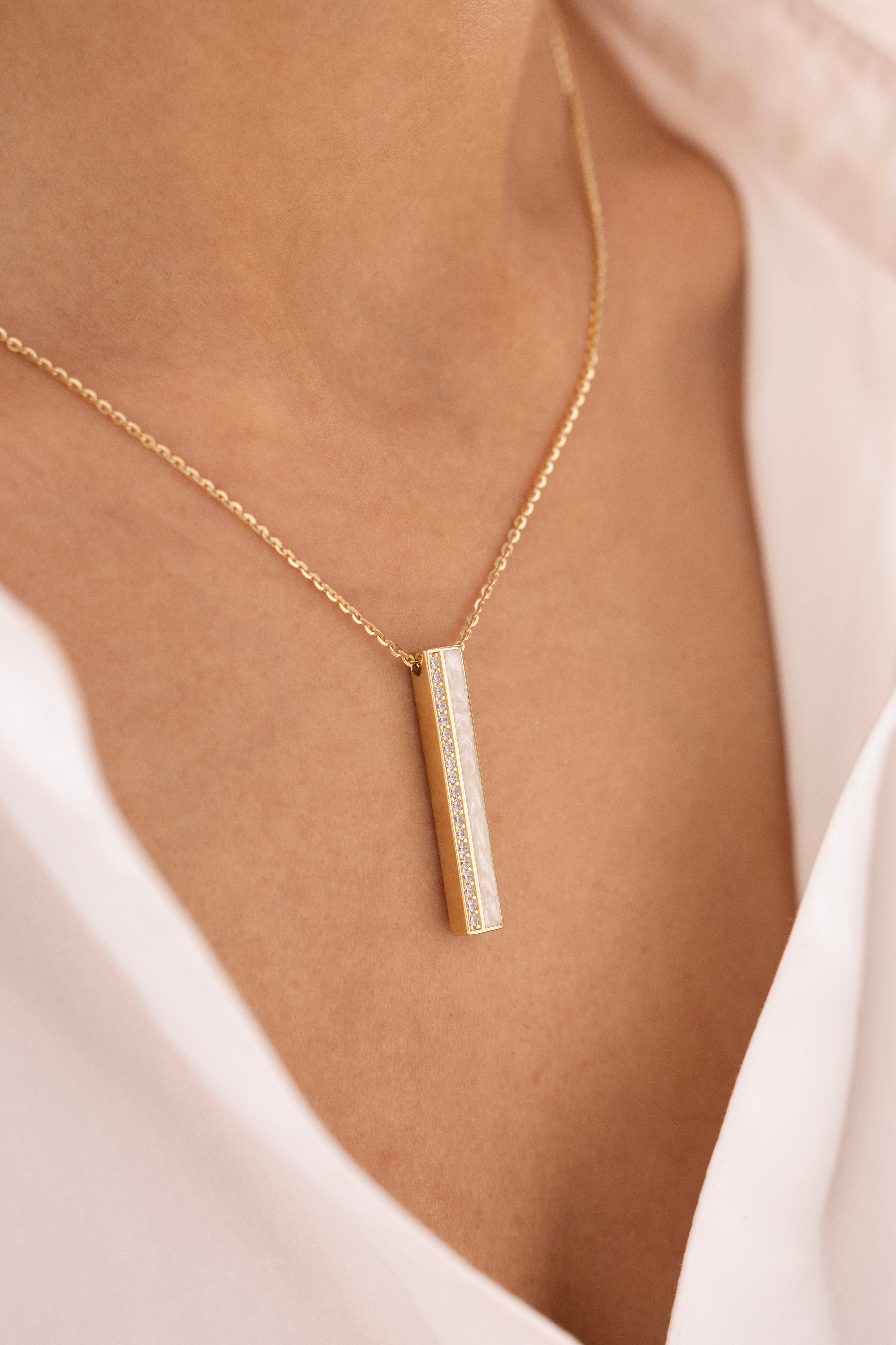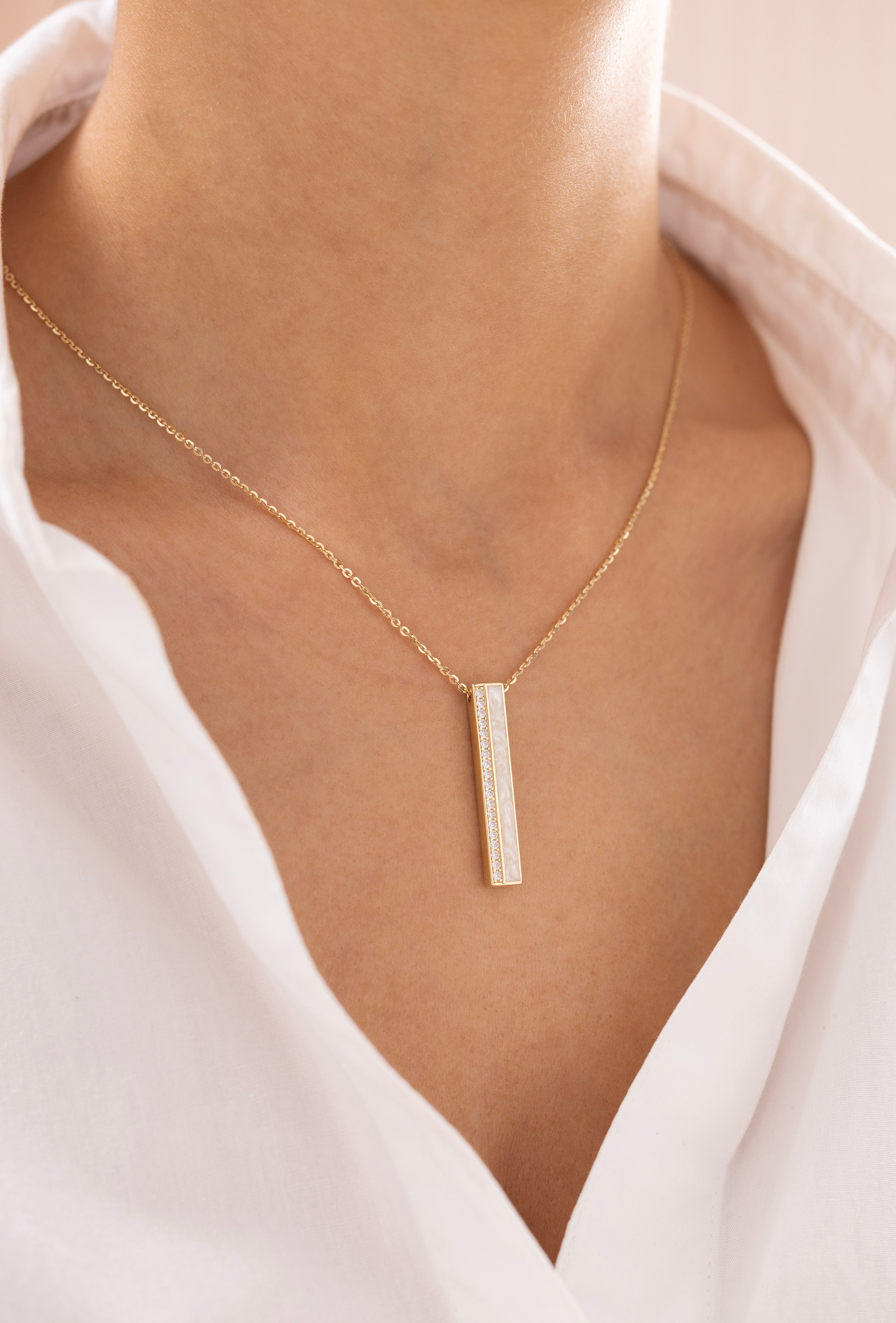 Cetaş Eterna Dikdörtgen Taşlı 14 Ayar Altın Kolye