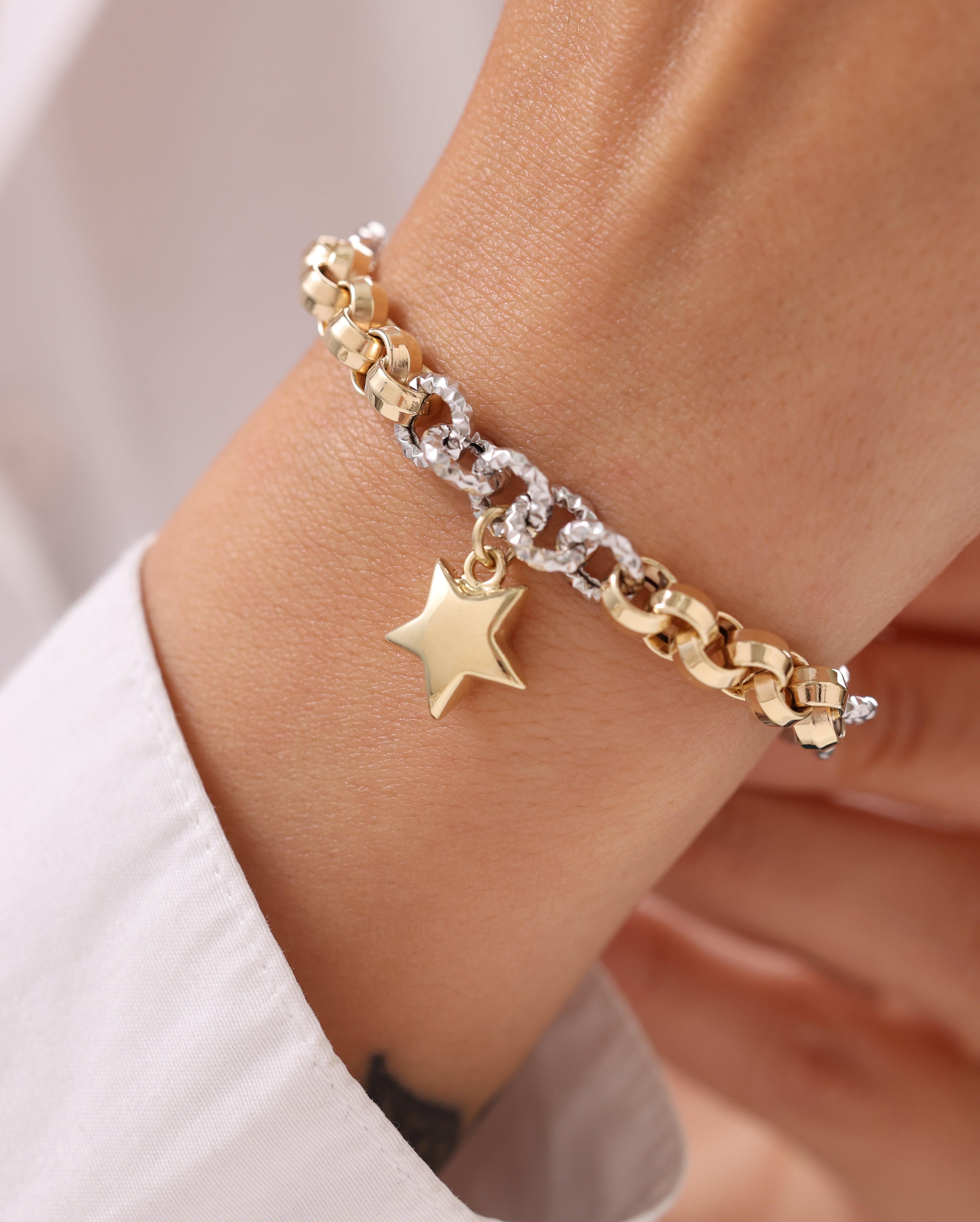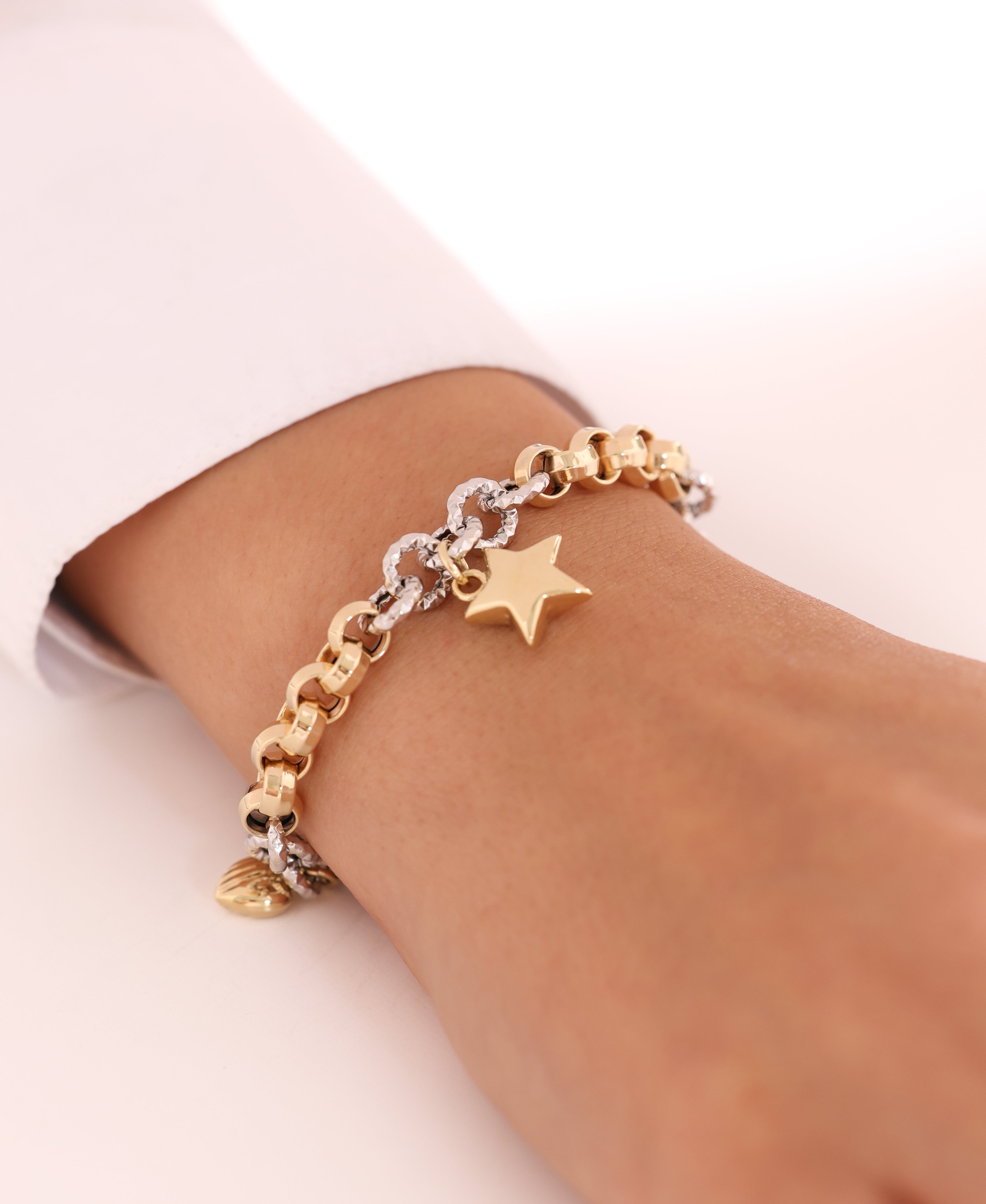 Cetaş Eterna İki Renk Zincirli Yıldızlı 14 Ayar Altın Bileklik