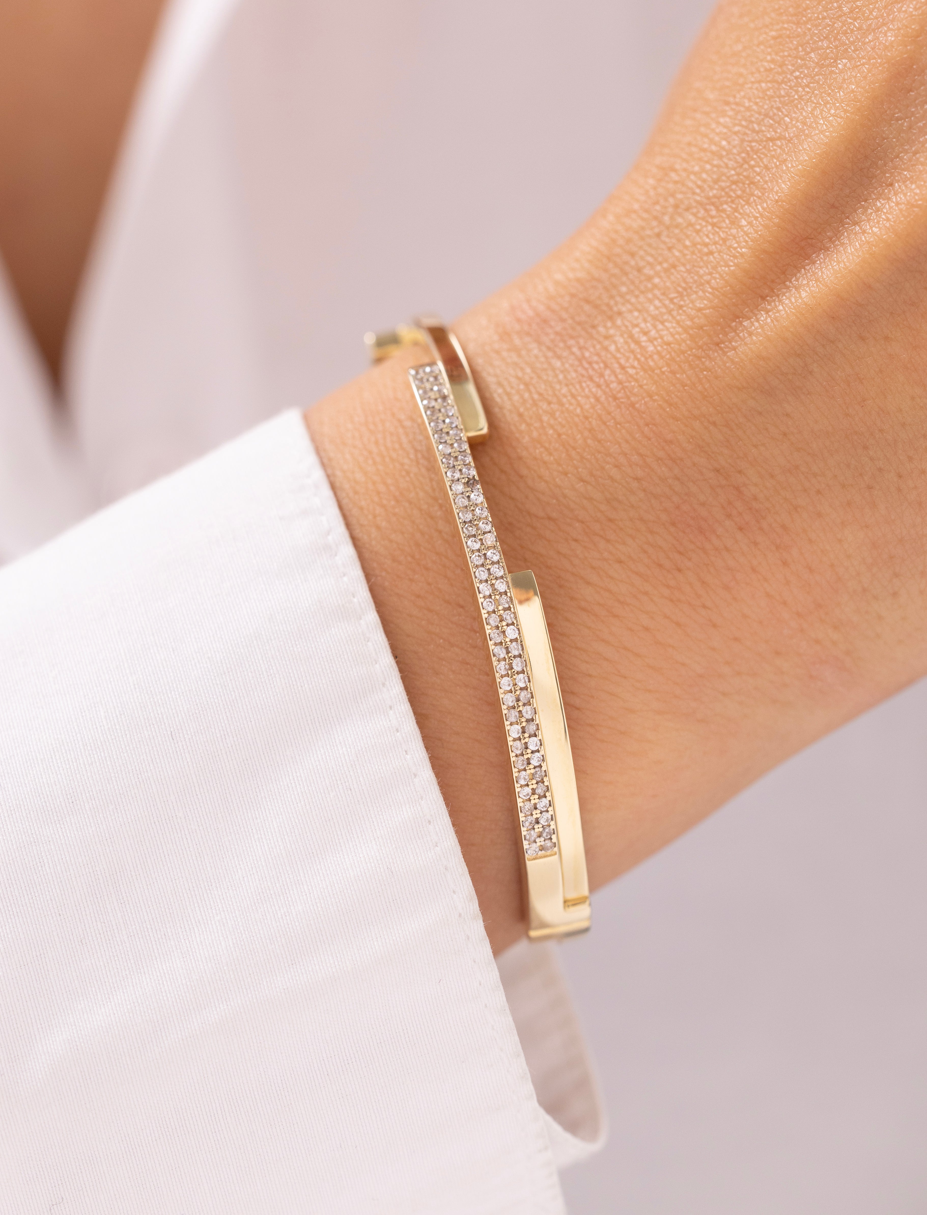 Cetaş Eterna Şerit Taşlı 14 Ayar Altın Kelepçe