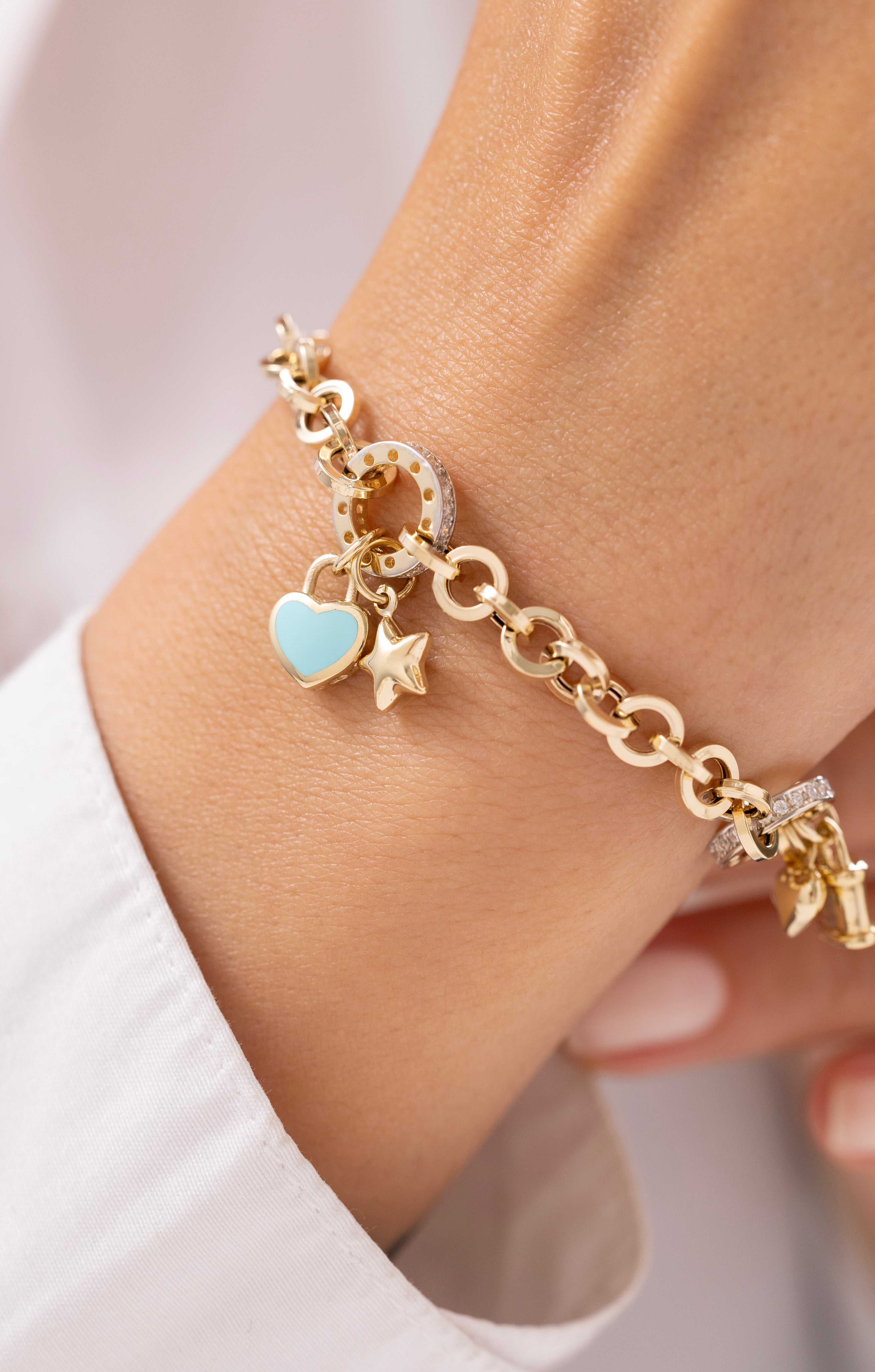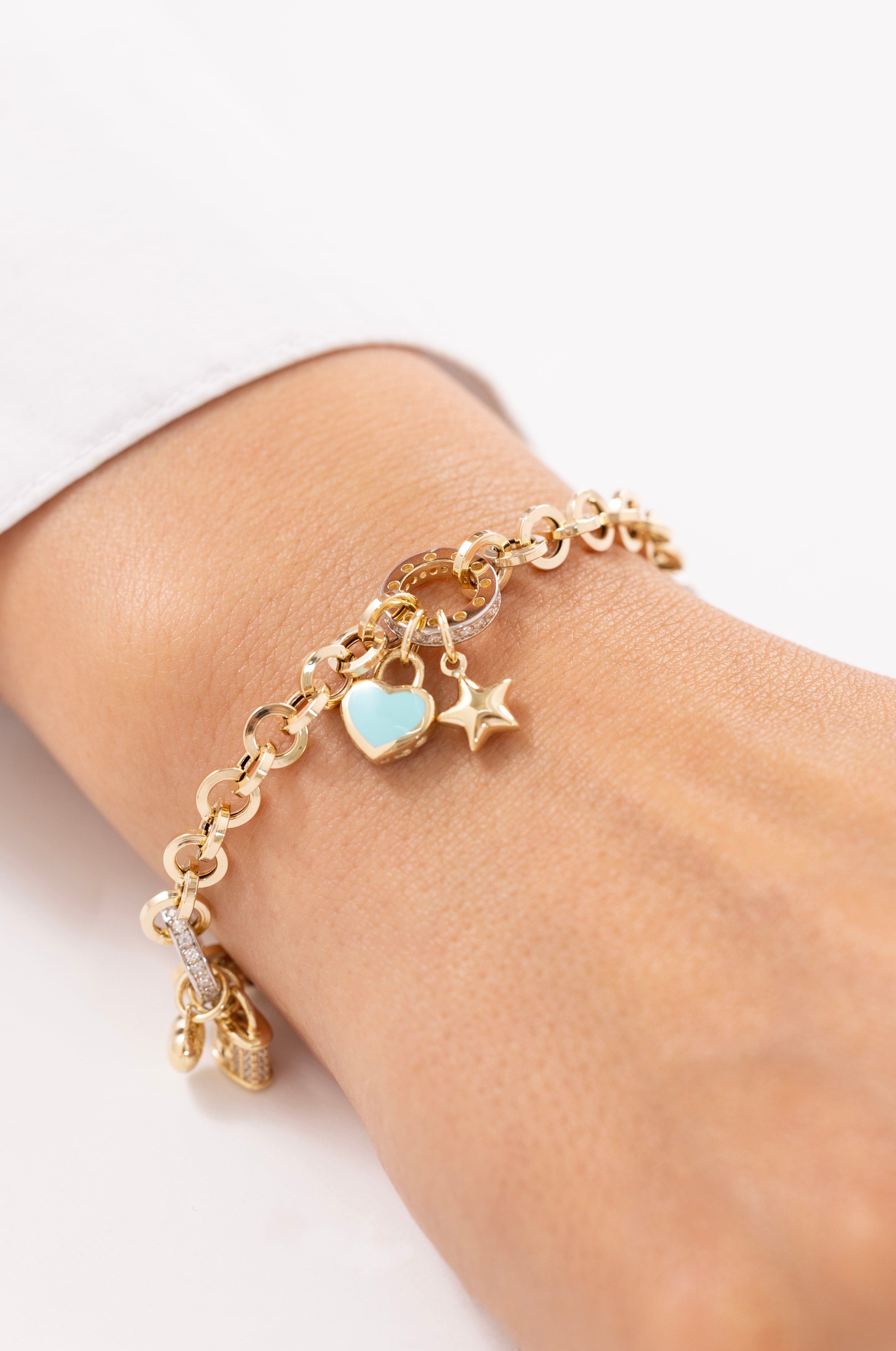 Cetaş Eterna Kalpli Yıldız Charmlı 14 Ayar Altın Bileklik