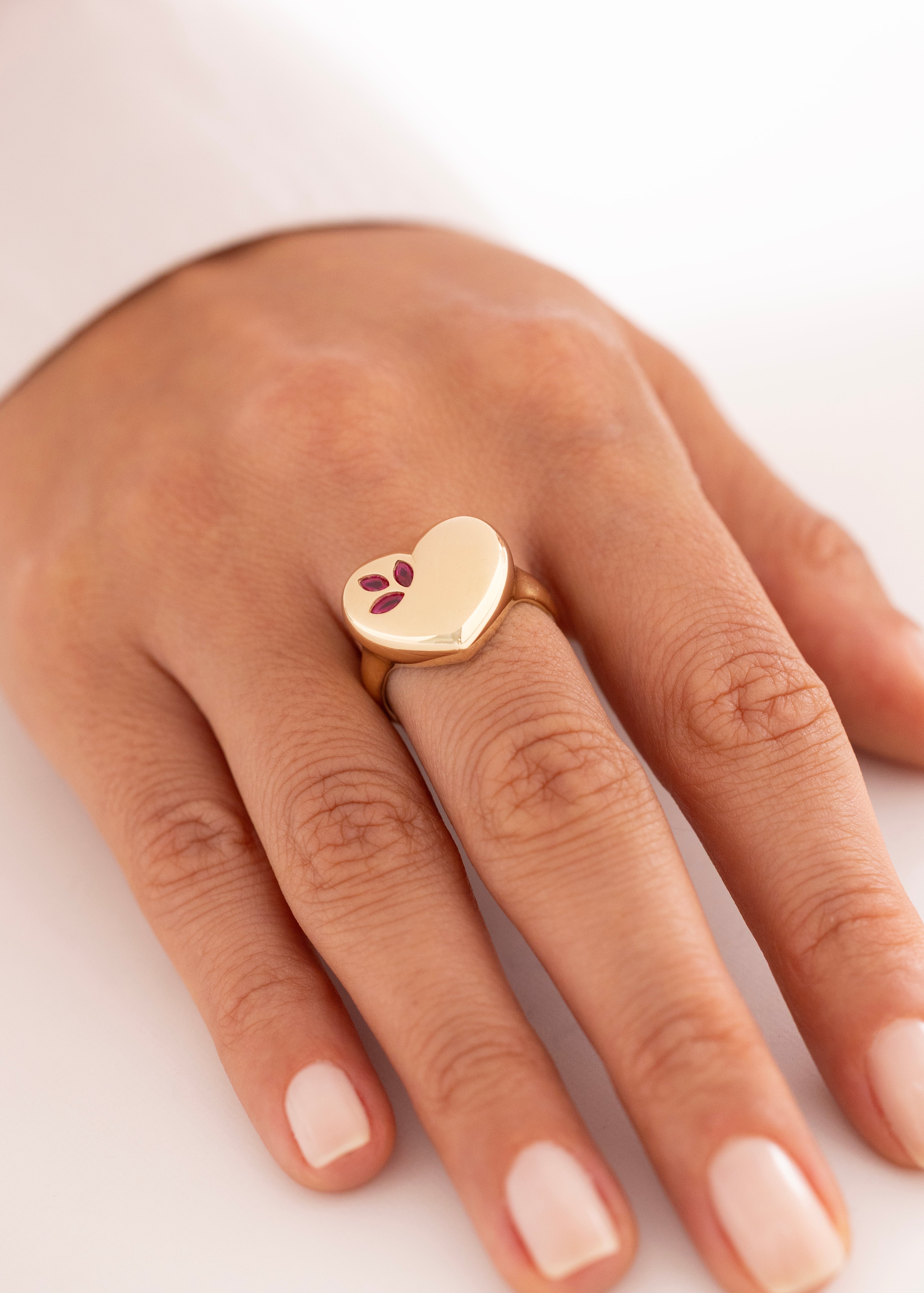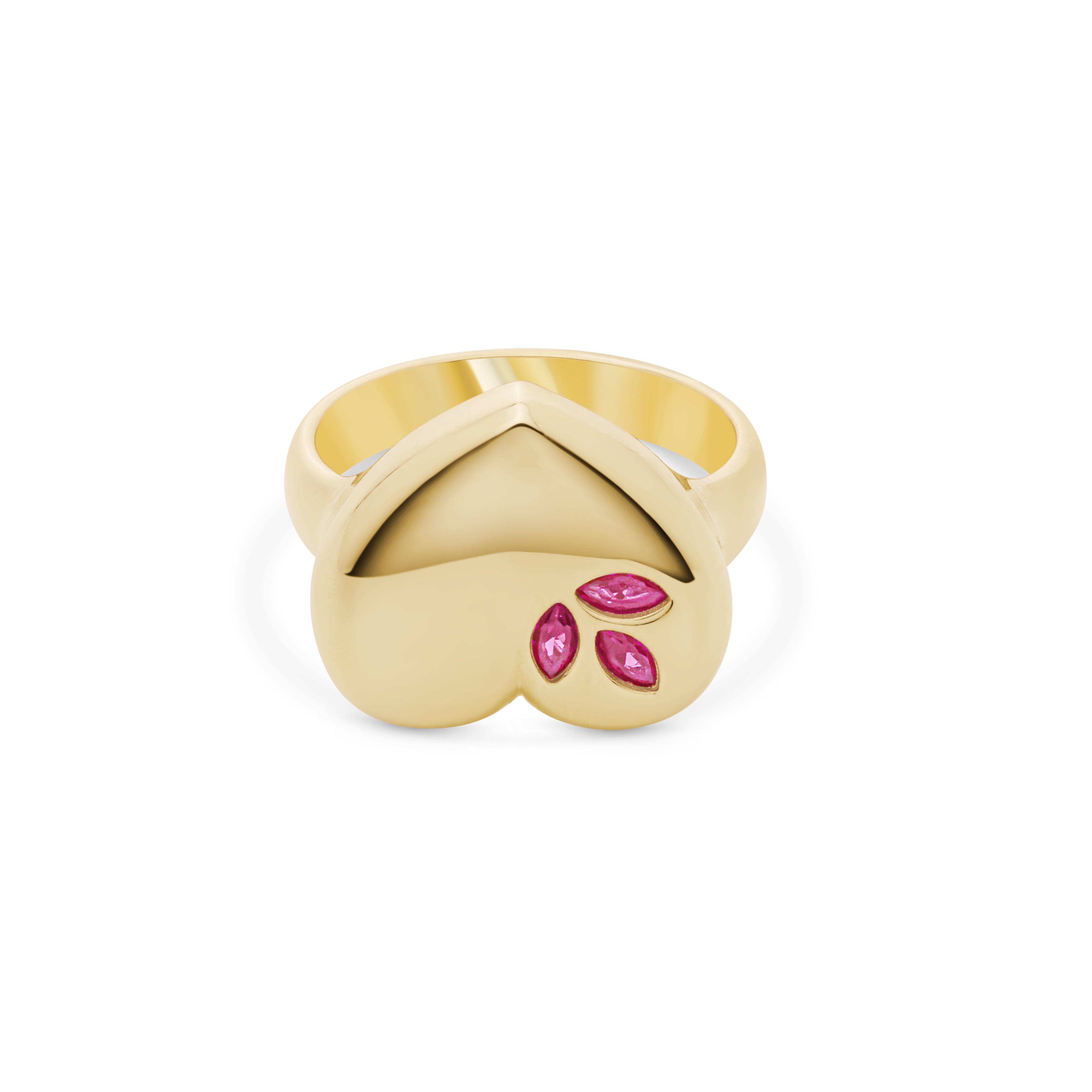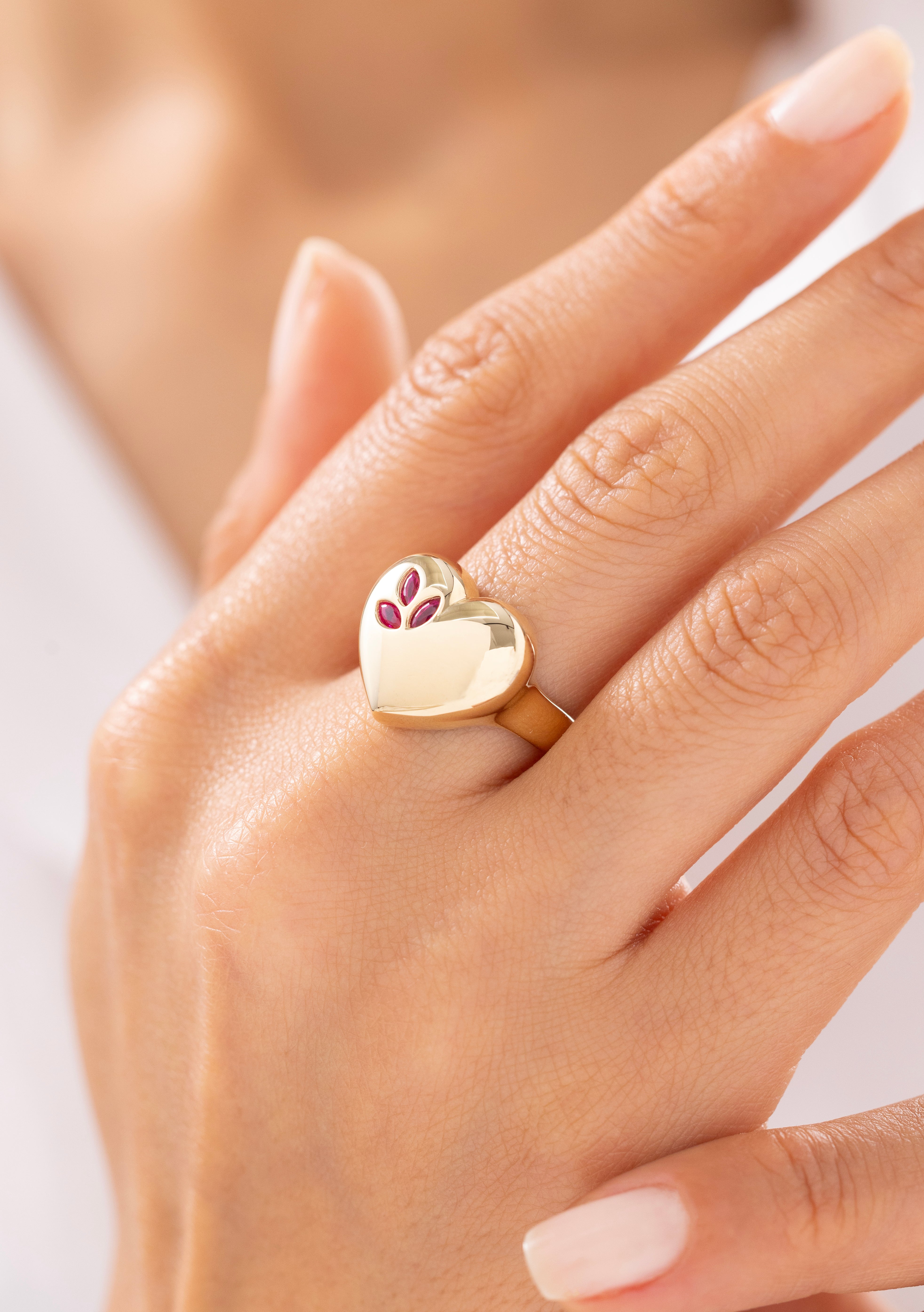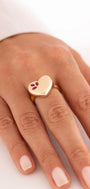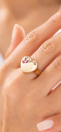 Cetaş Eterna Kırmızı Taş Detaylı Kalp Model 14 Ayar Altın Yüzük