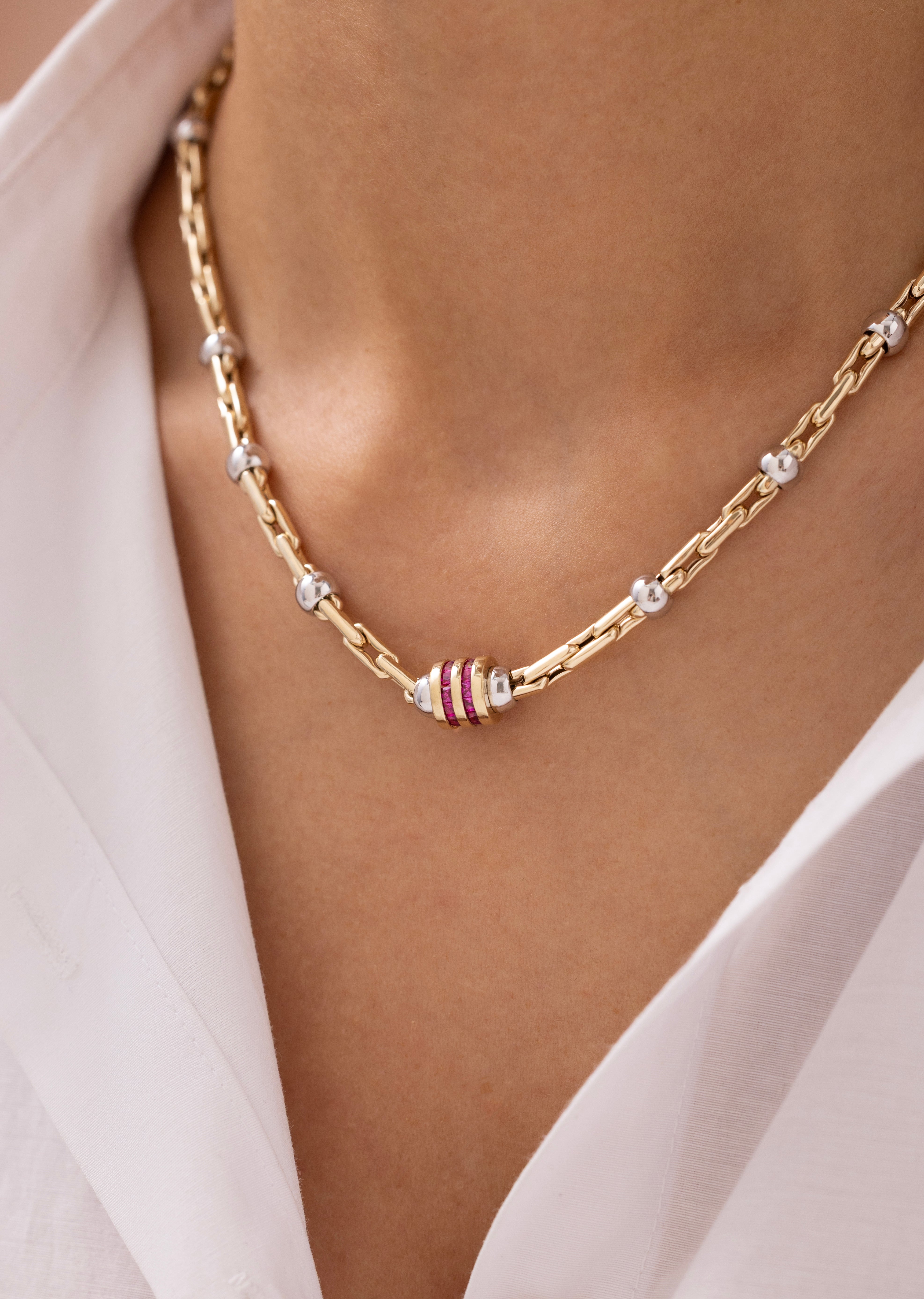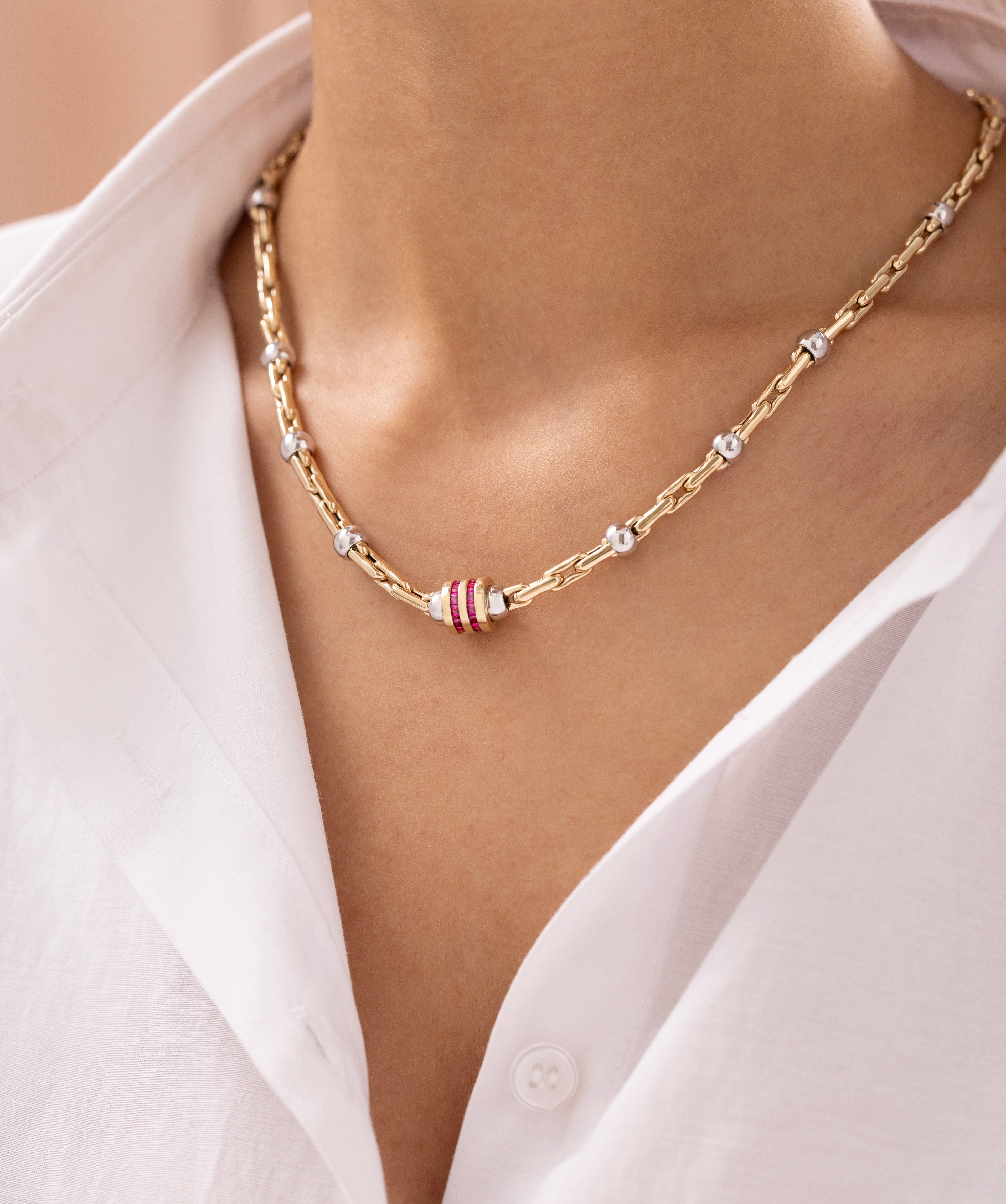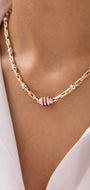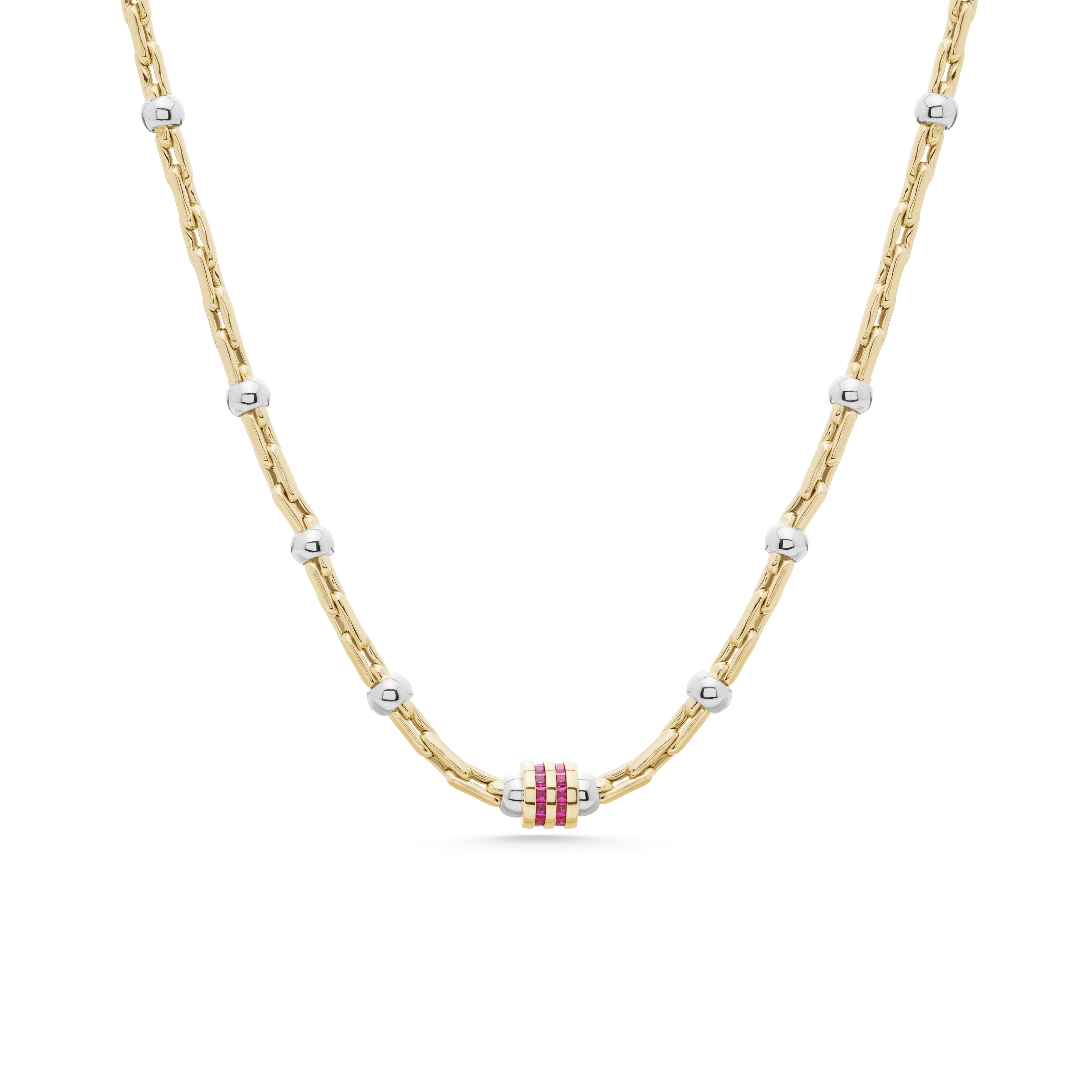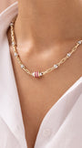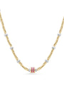 Cetaş Eterna Kırmızı Taşlı Çift Renkli 14 Ayar Altın Zincir Kolye