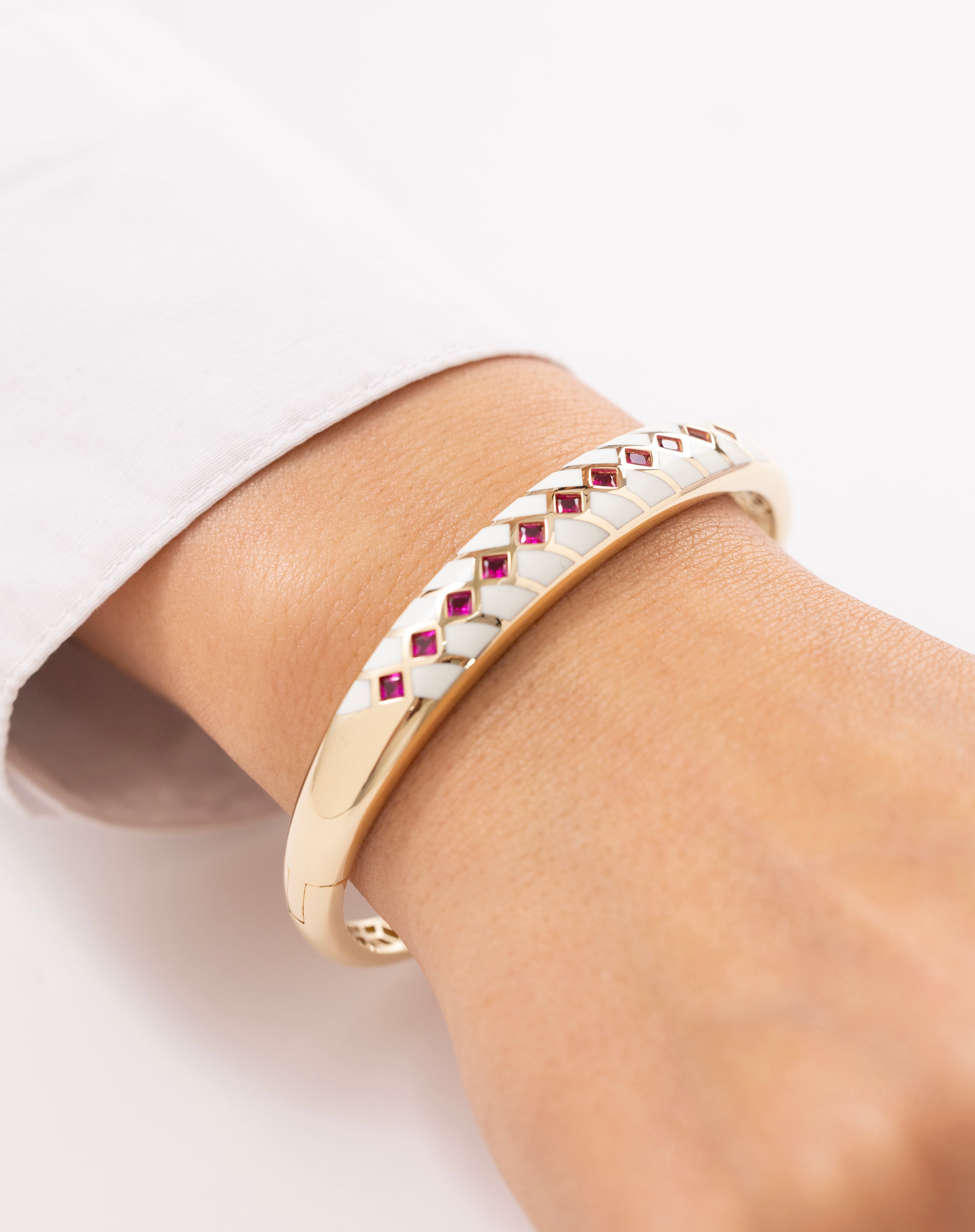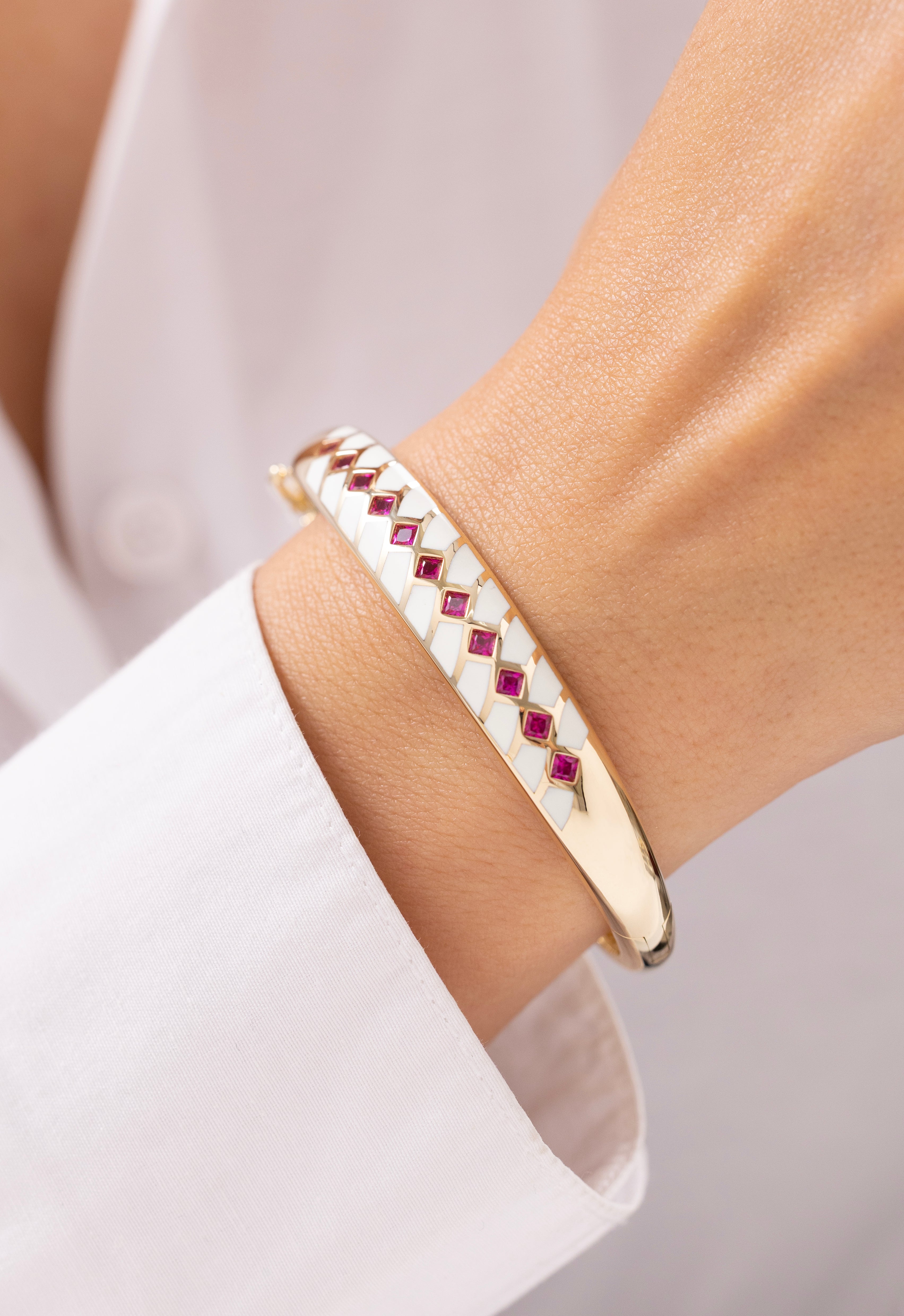 Cetaş Eterna Kırmızı Taşlı Beyaz Mine 14 Ayar Altın Kelepçe