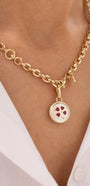 Cetaş Eterna Kırmızı Taşlı Yonca Figürlü 14 Ayar Altın Kolye