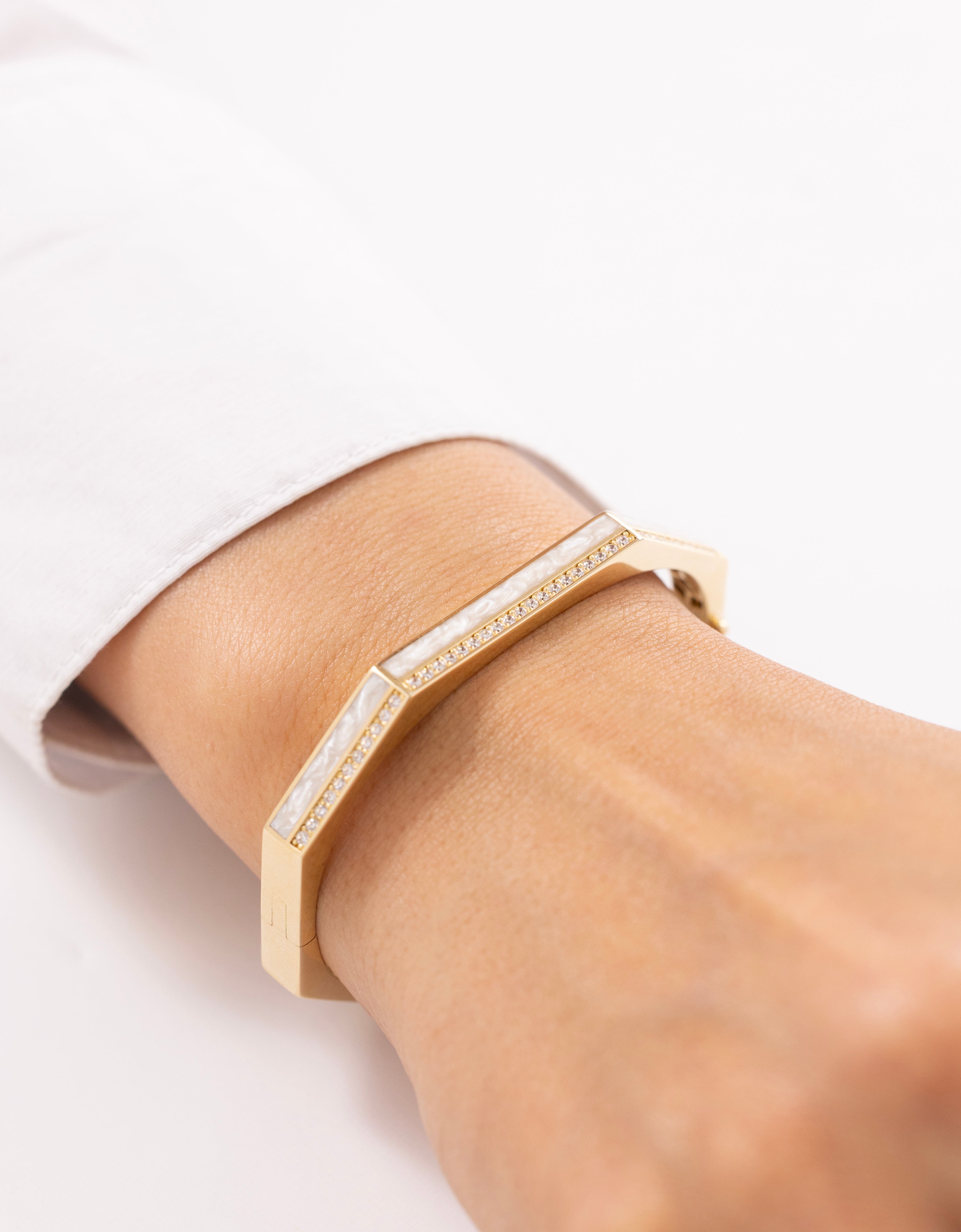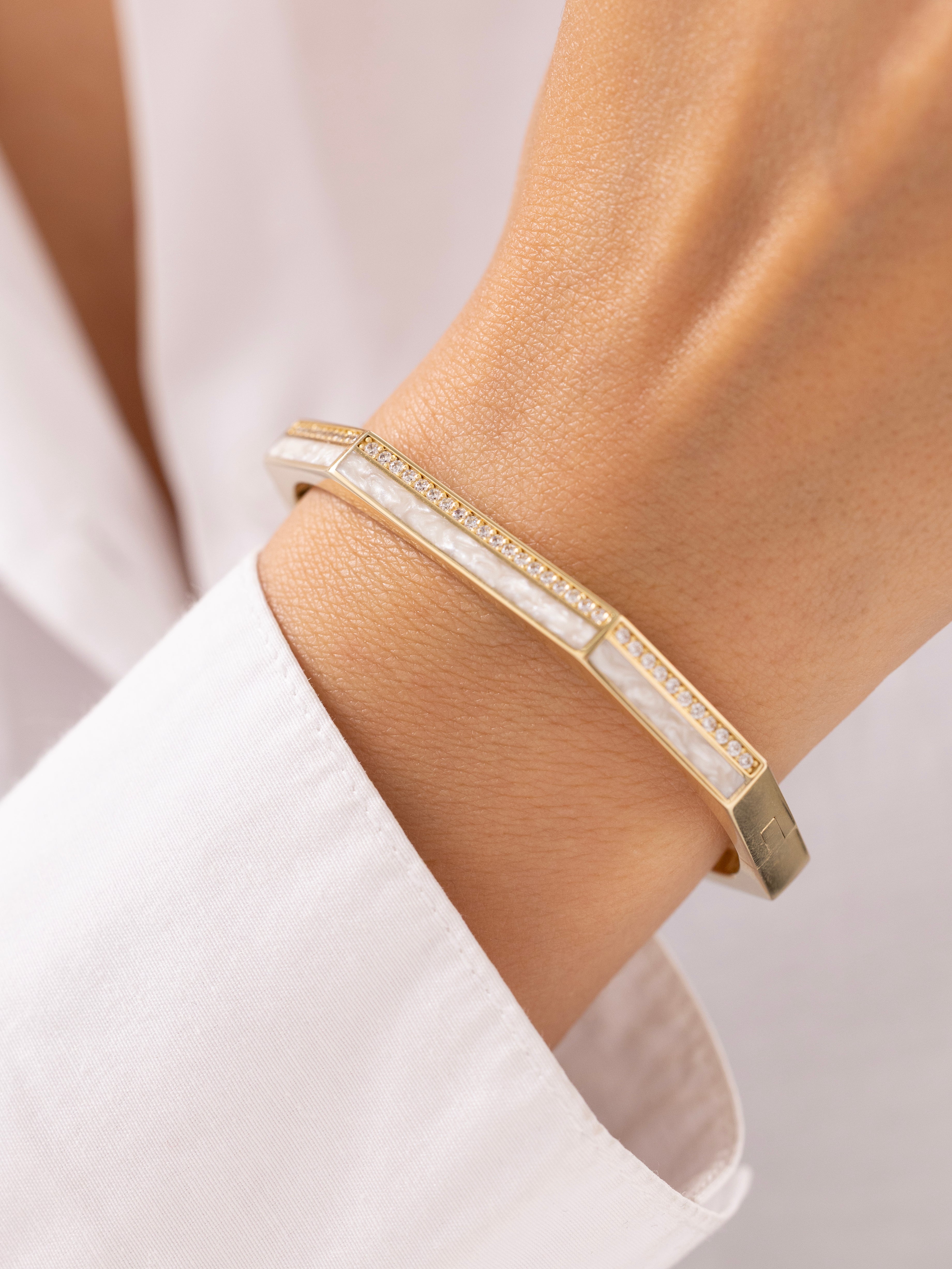 Cetaş Eterna Modern Hatlar Sedefli 14 Ayar Altın Kelepçe
