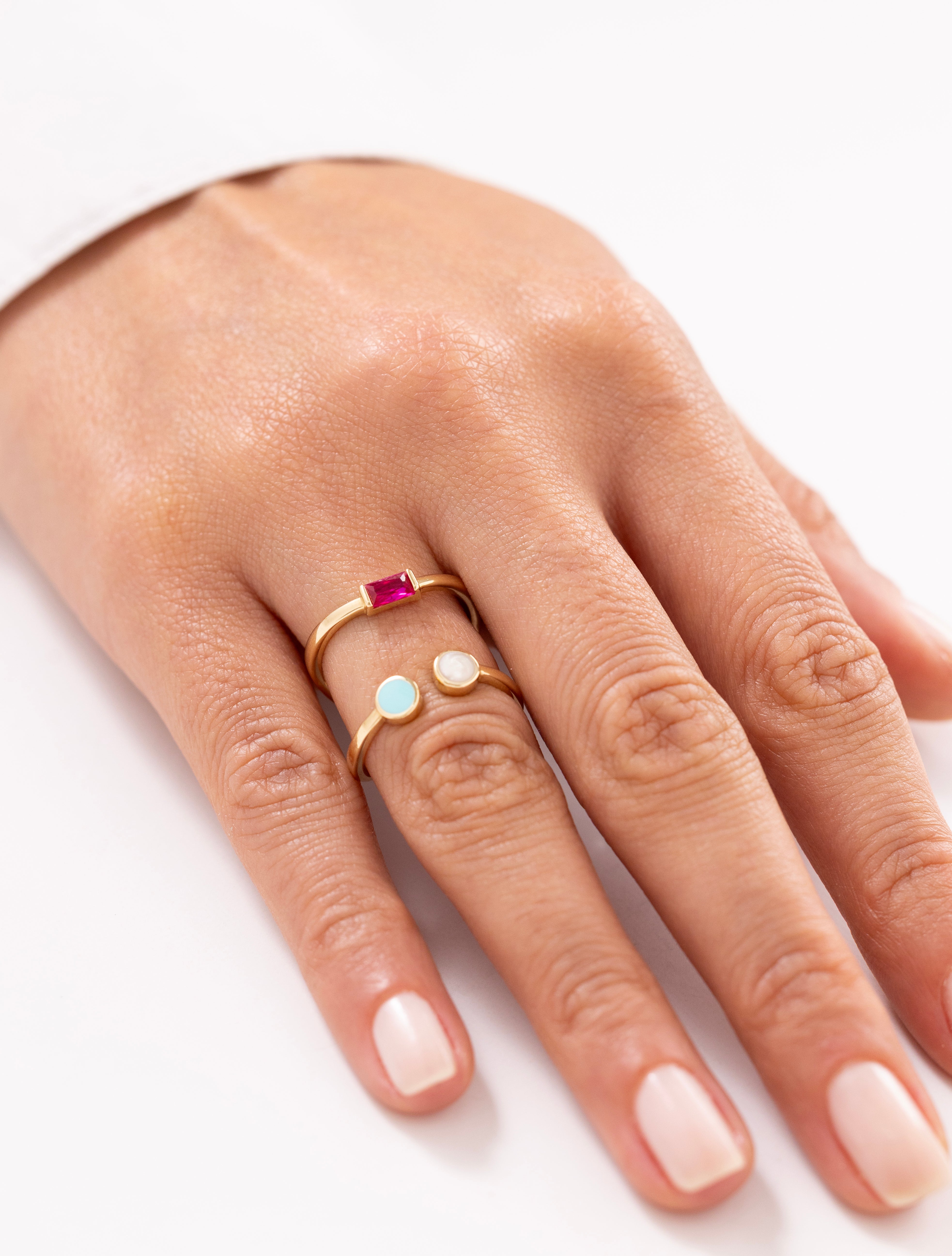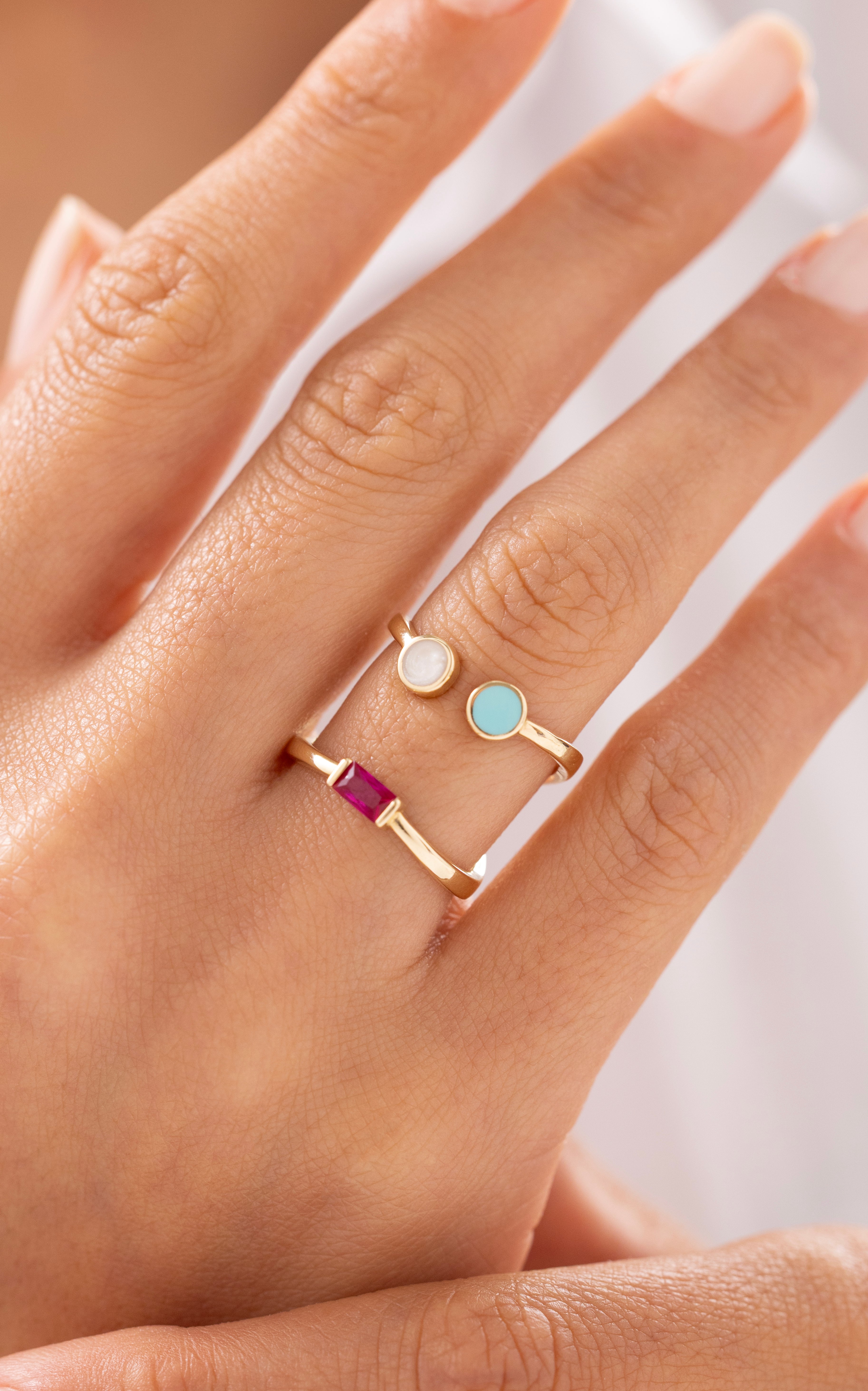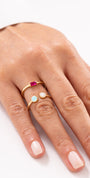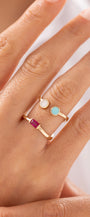 Cetaş Eterna Renkli Üç Taşlı 14 Ayar Altın Yüzük