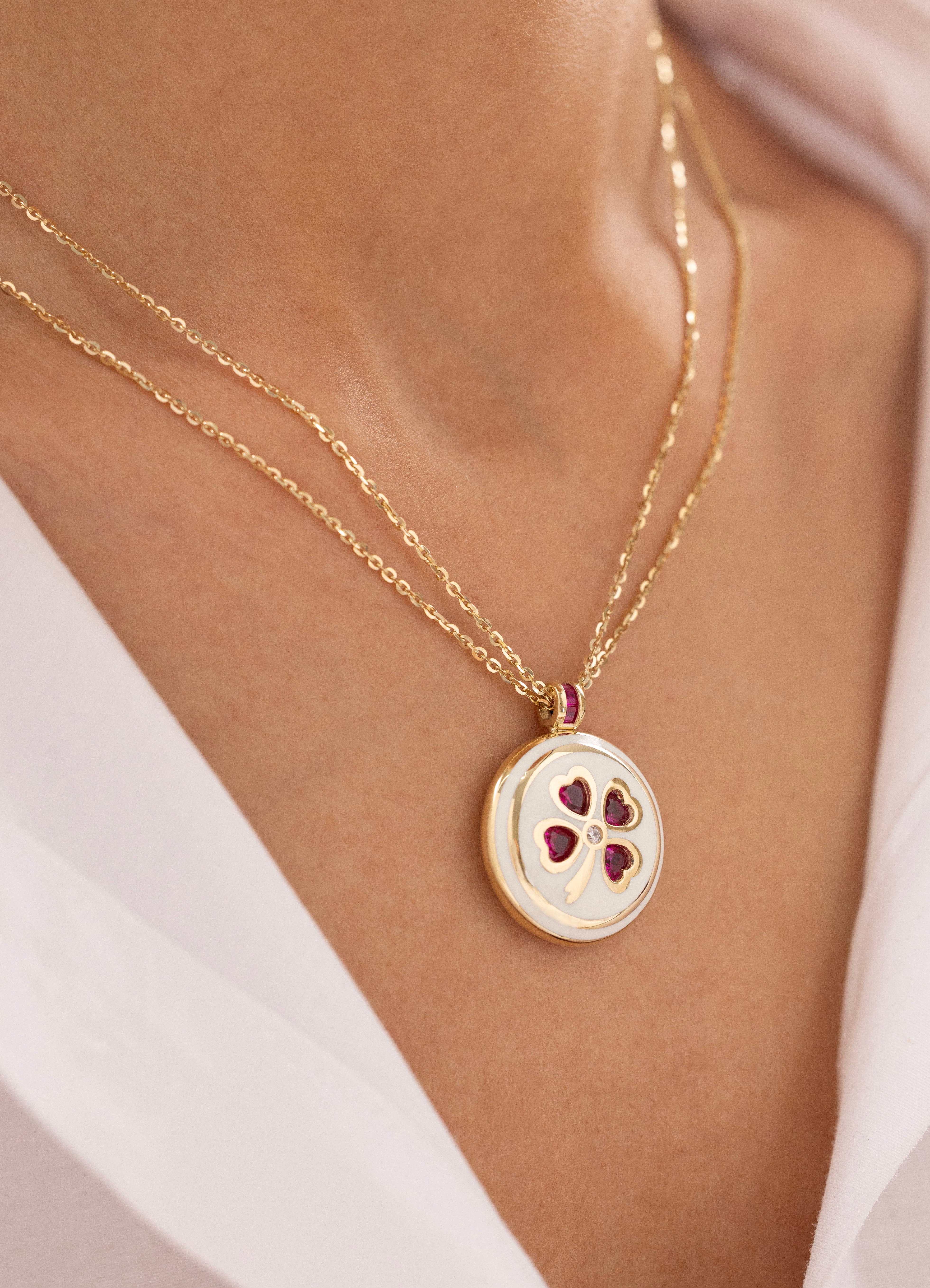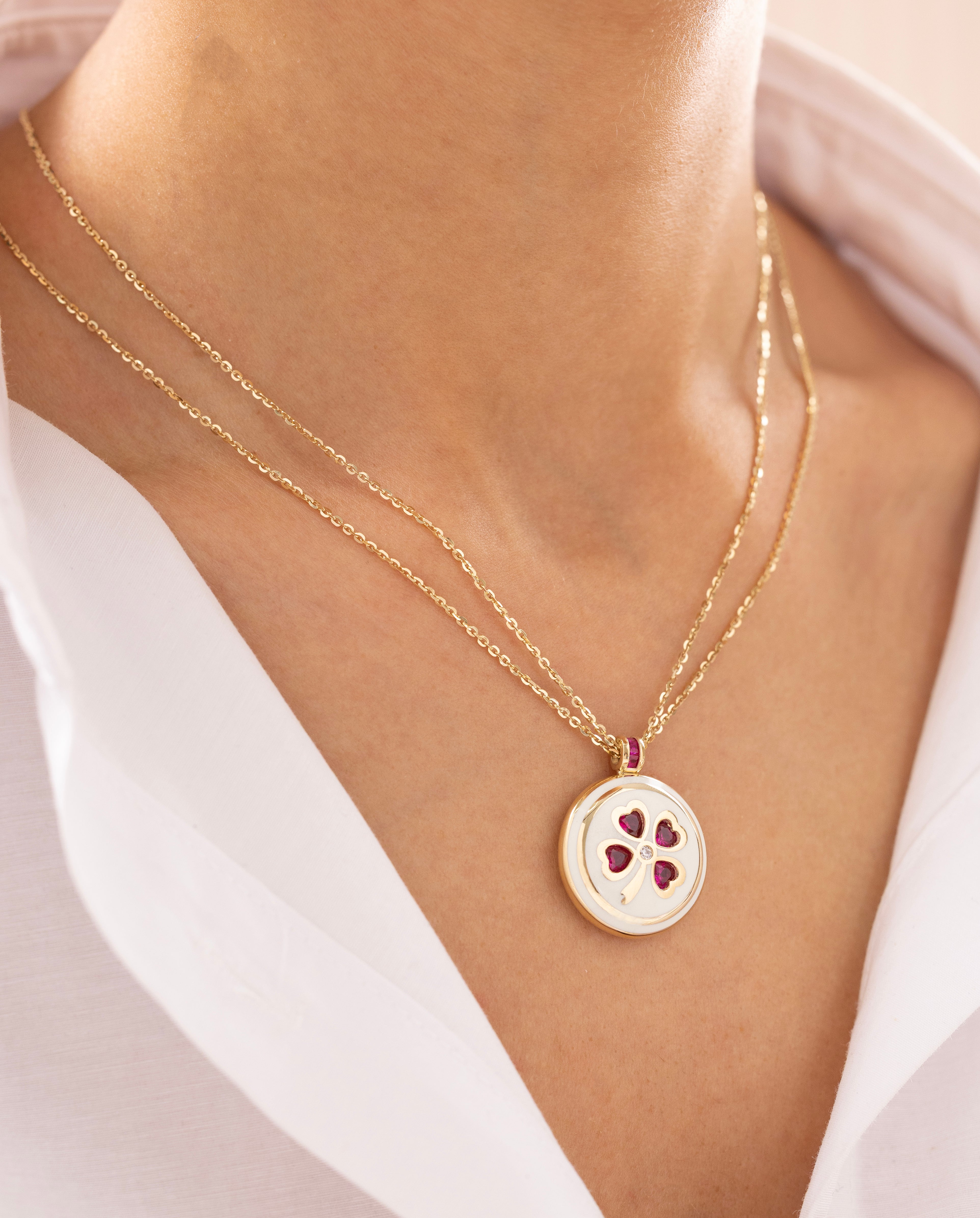 Cetaş Eterna Sedefli Şans Yoncalı 14 Ayar Altın Kolye