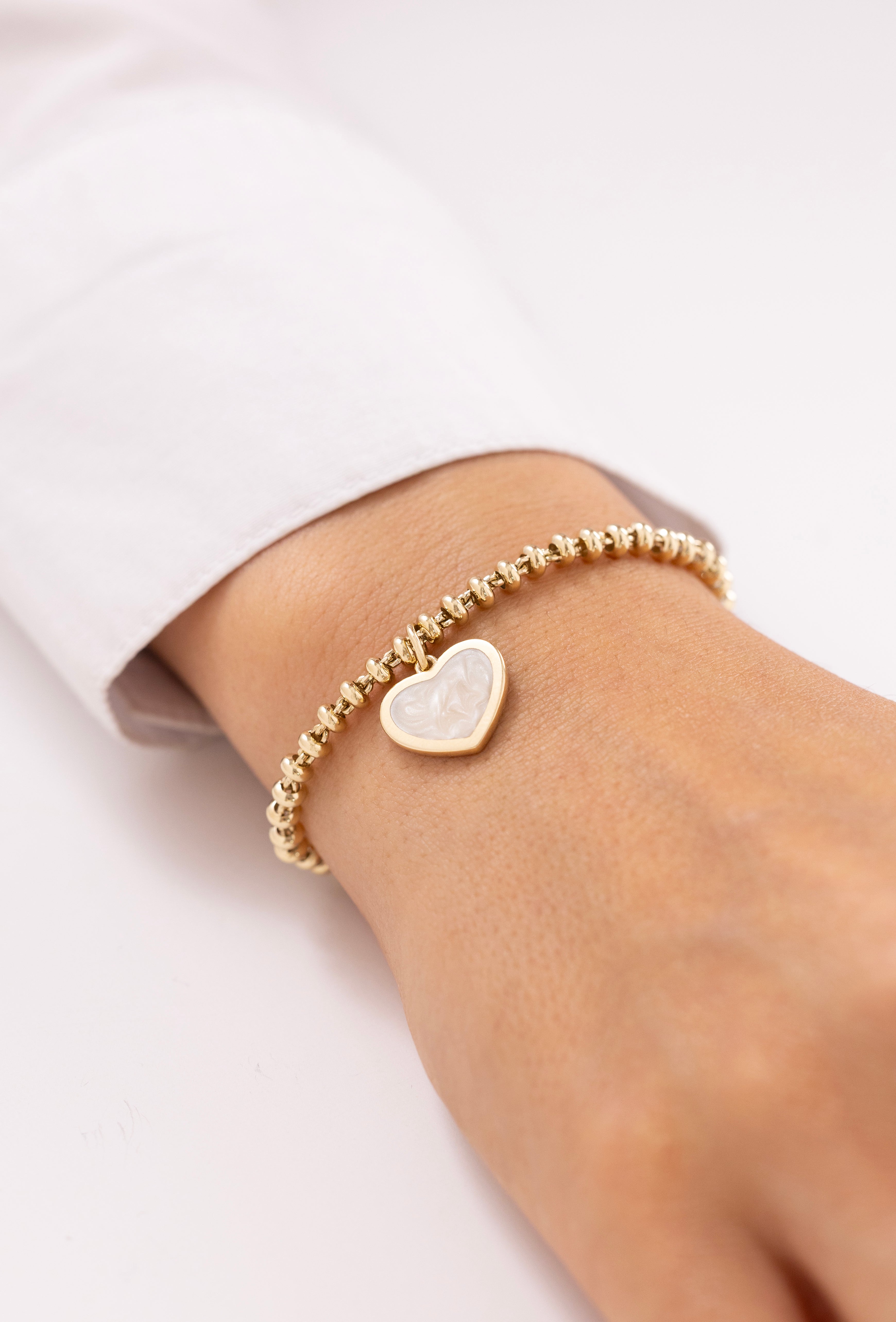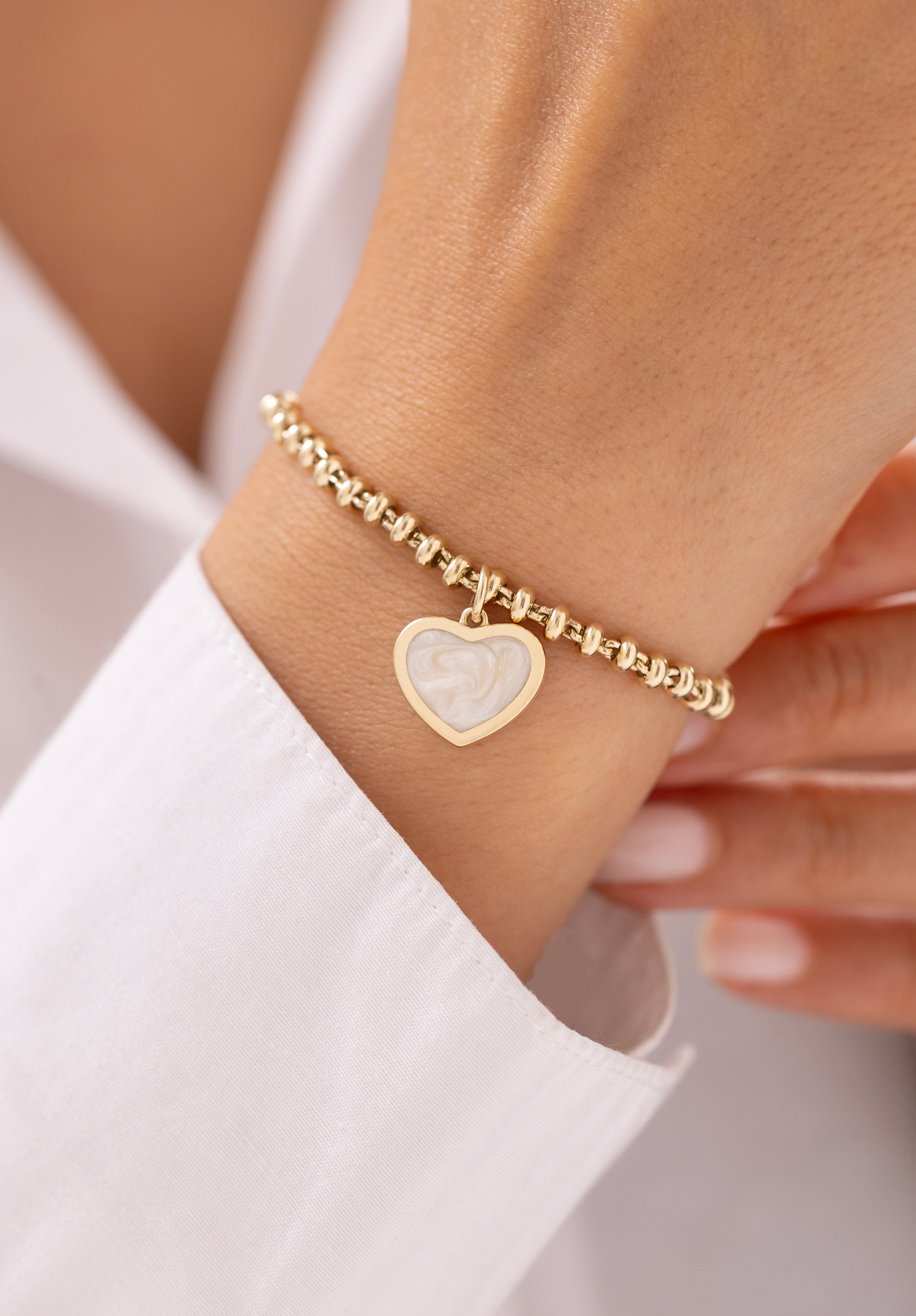 Cetaş Eterna Sedef Kalp Charmlı 14 Ayar Altın Bileklik