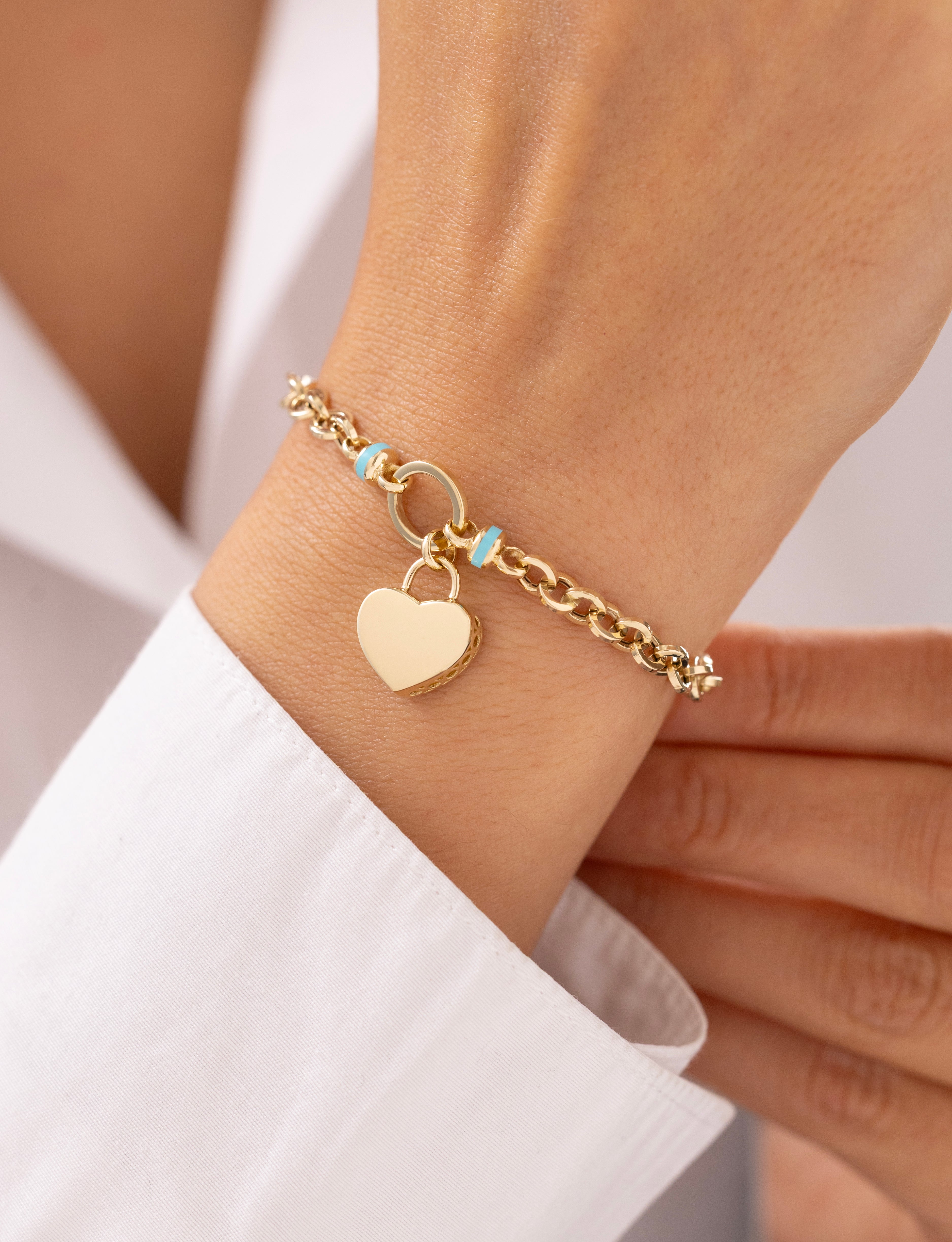 Cetaş Eterna Kalp Charmlı 14 Ayar Altın Bileklik