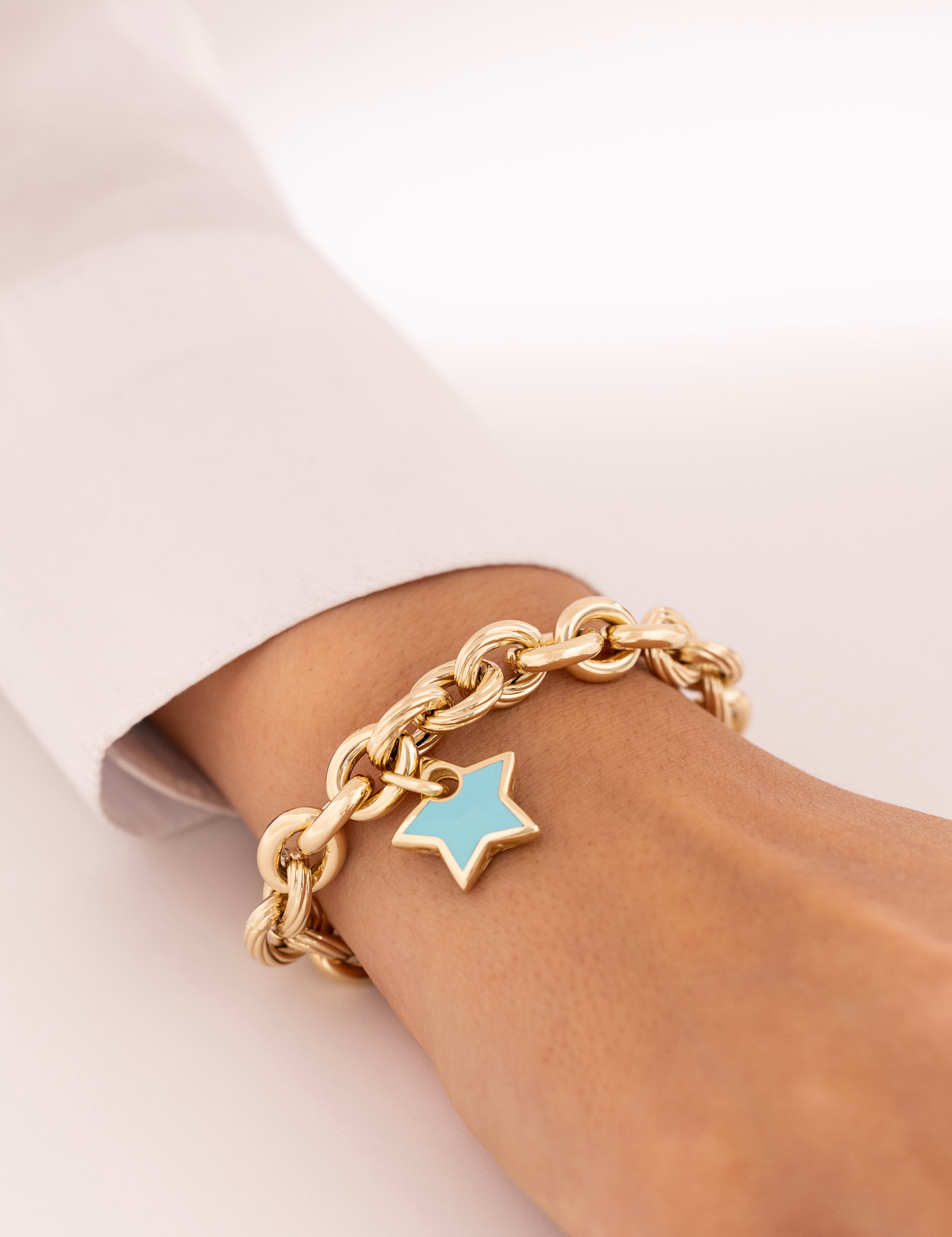 Cetaş Eterna Turkuaz Yıldız Charm 14 Ayar Altın Zincir Bileklik
