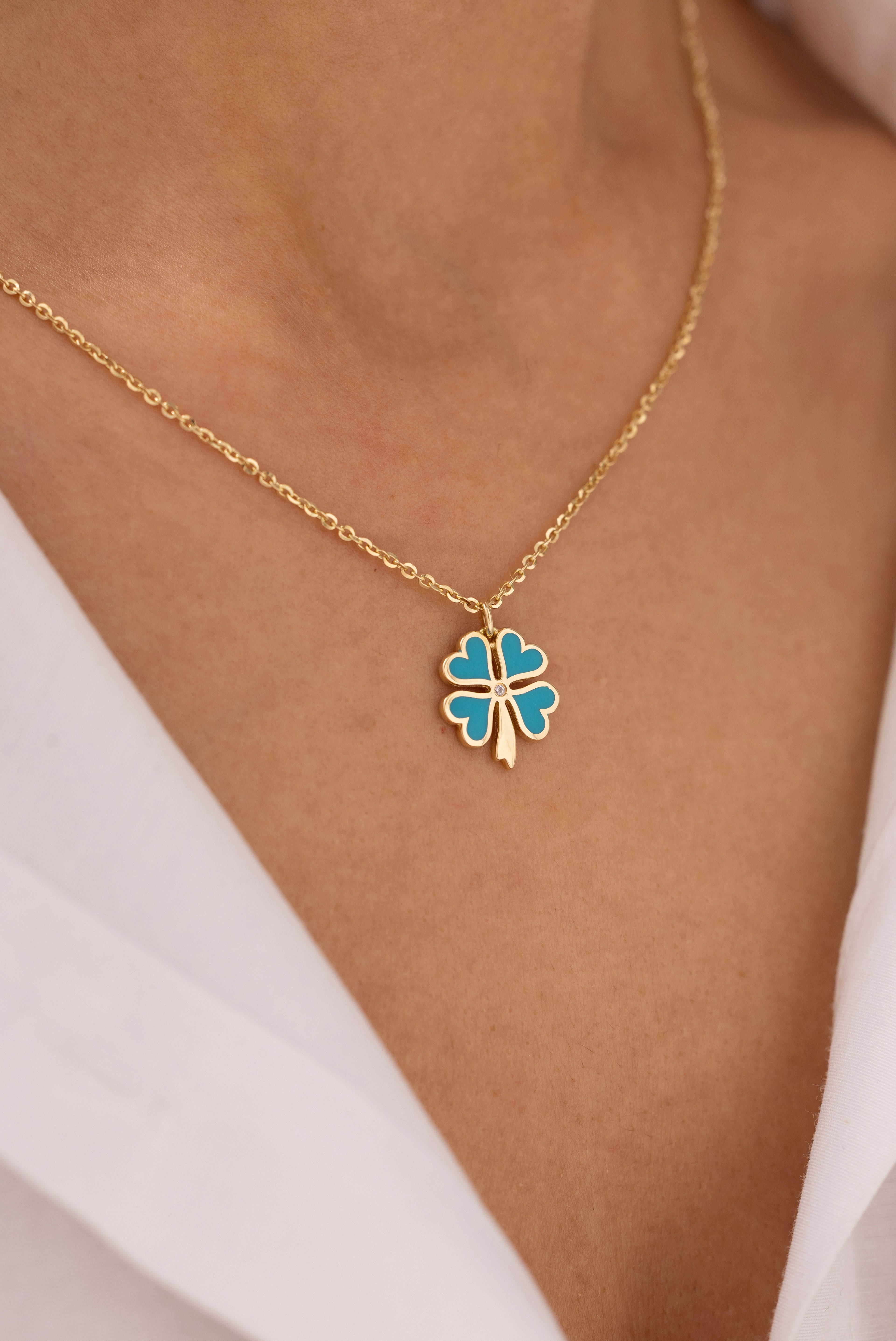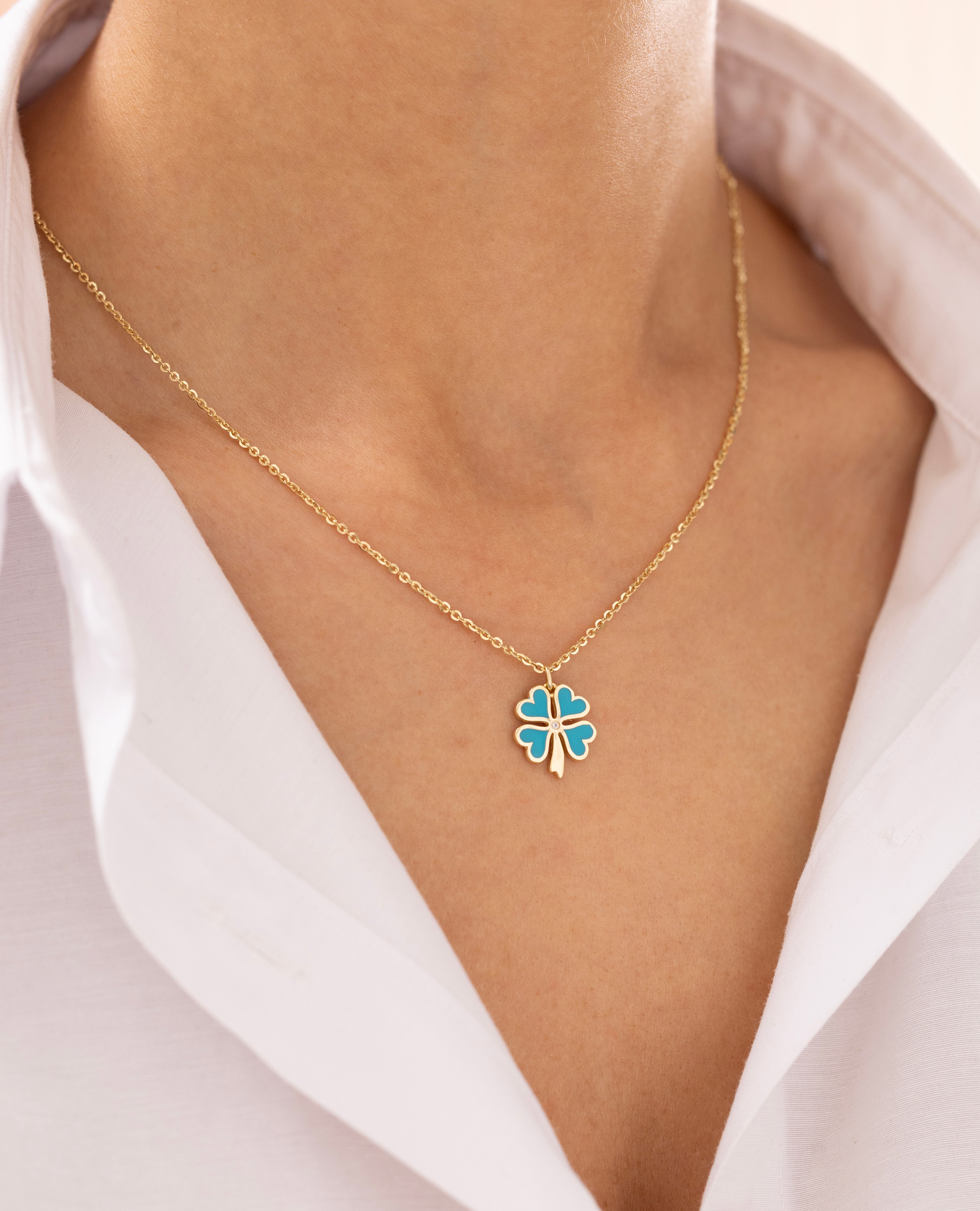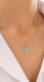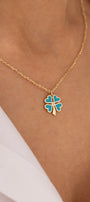 Cetaş Eterna Turkuaz Yonca Yuvarlak Zincirli 14 Ayar Altın Kolye