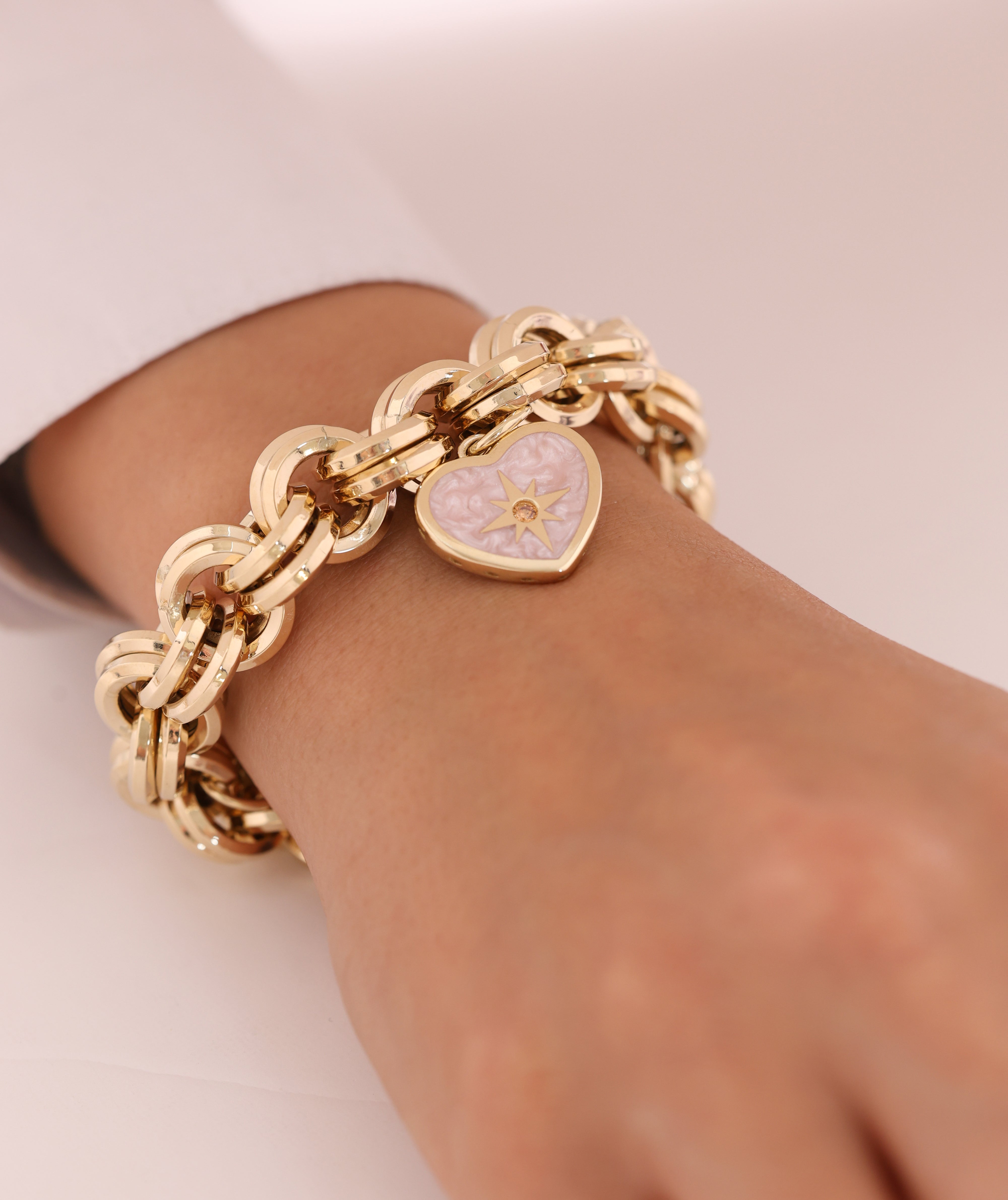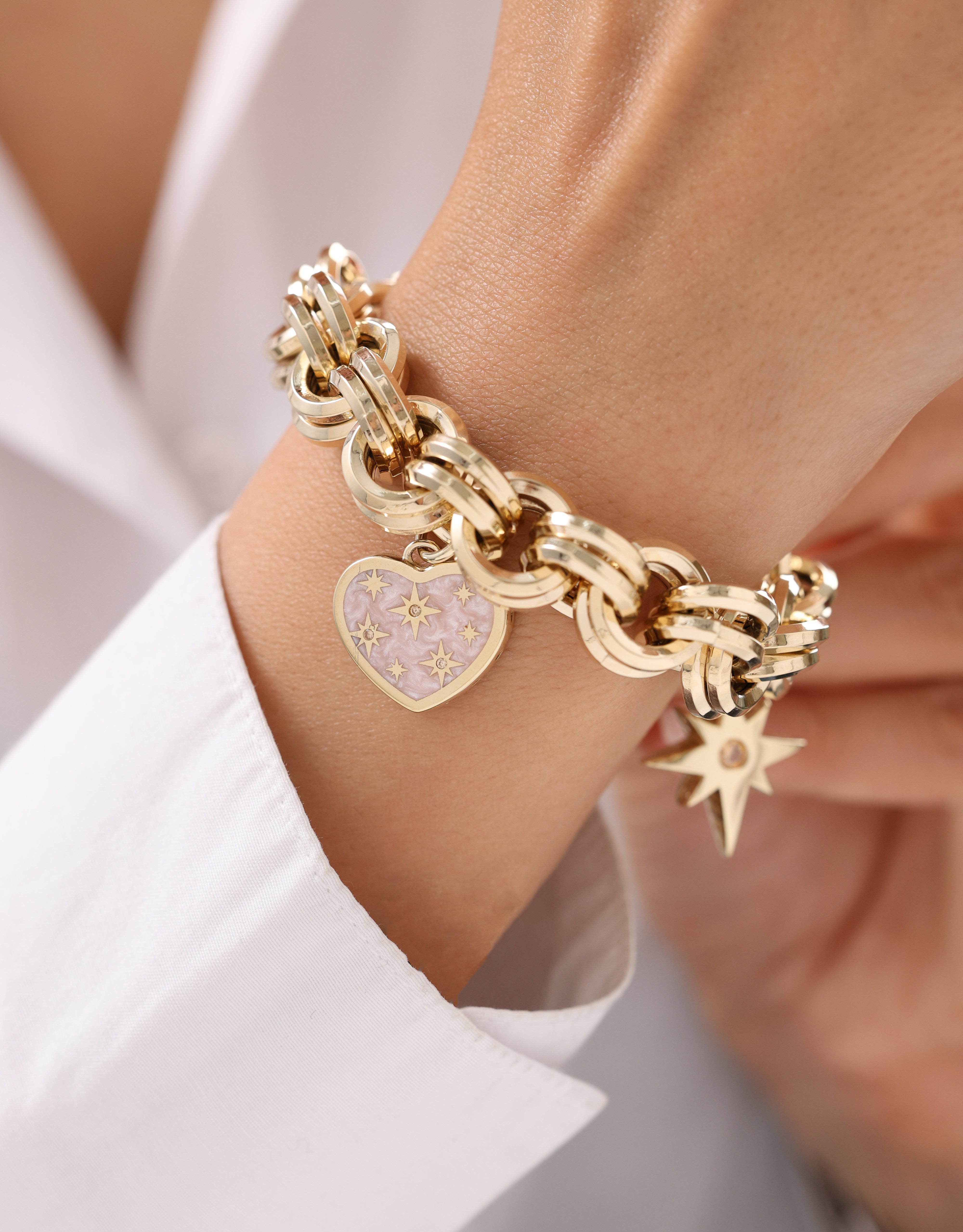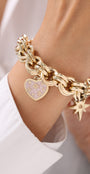 Cetaş Eterna Yıldızlı Kalp Charm 14 Ayar Altın Bileklik