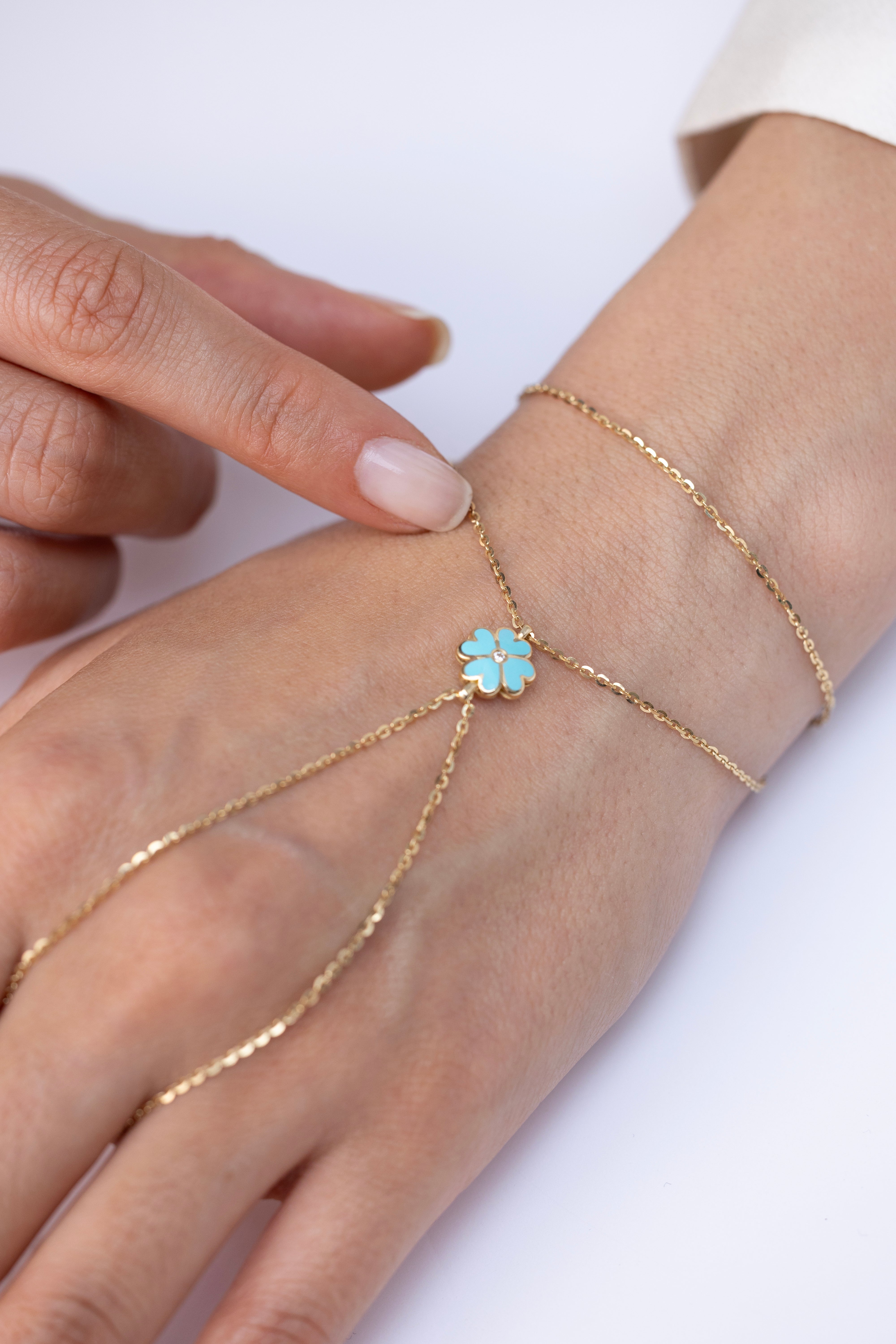 Cetaş Mavi Mineli Yonca 14 Ayar Altın Şahmeran