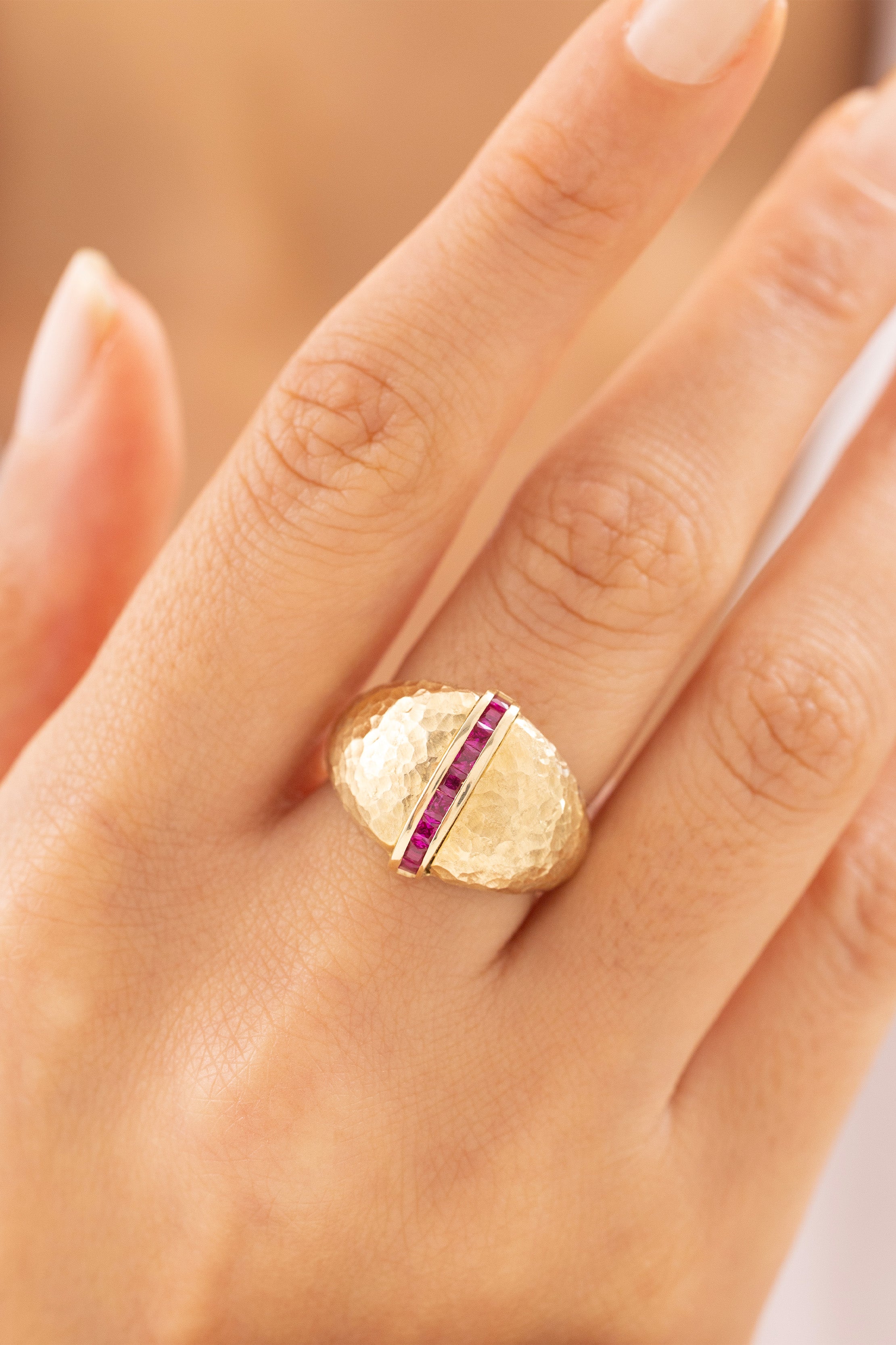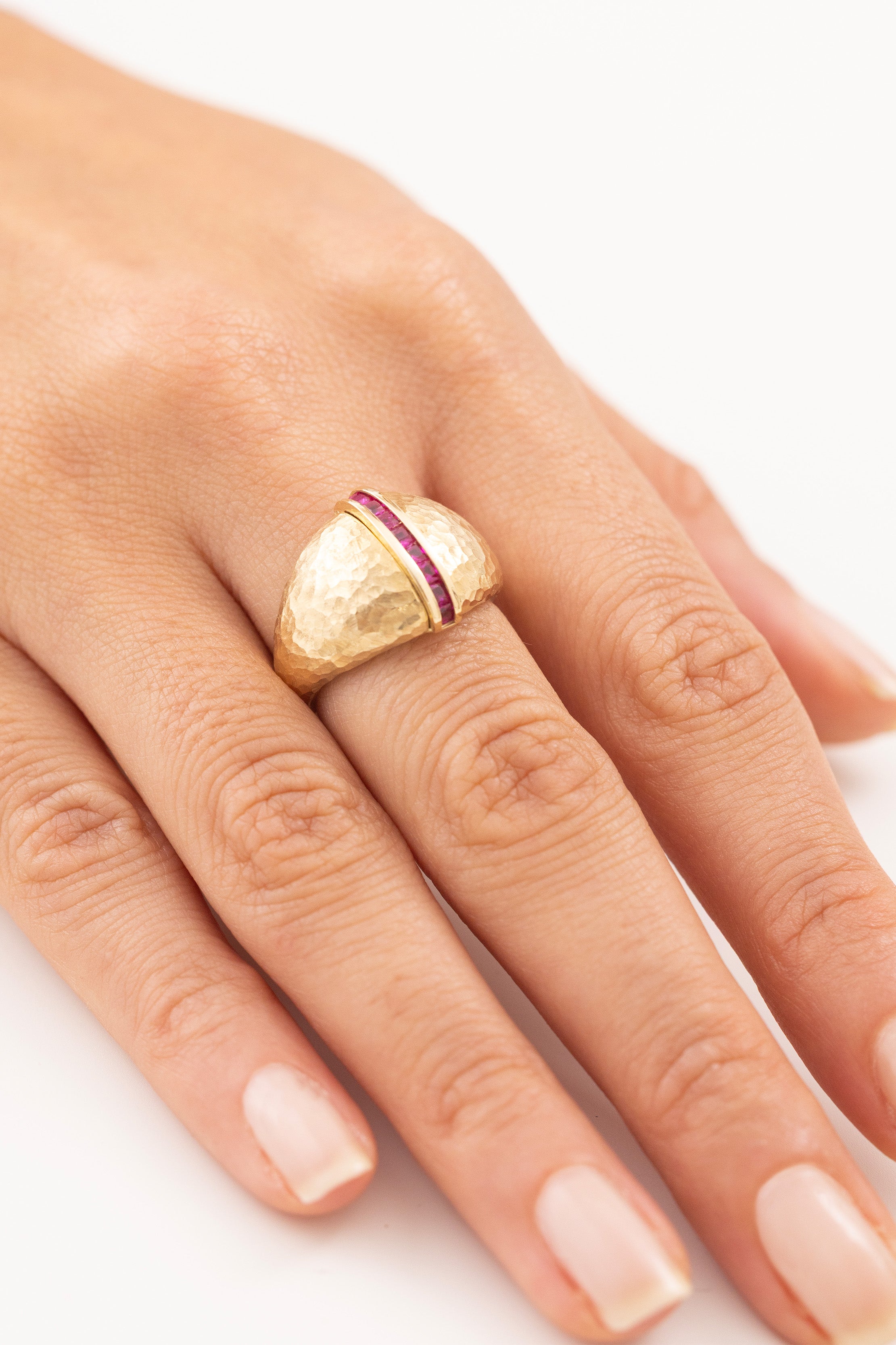 Cetaş Vintage Dövme Ruby Taşlı 14 Ayar Altın Yüzük