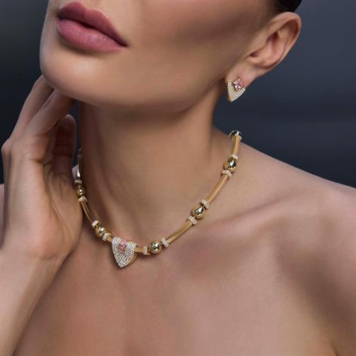 Pembe Baget Taşlı Silindir Kolye