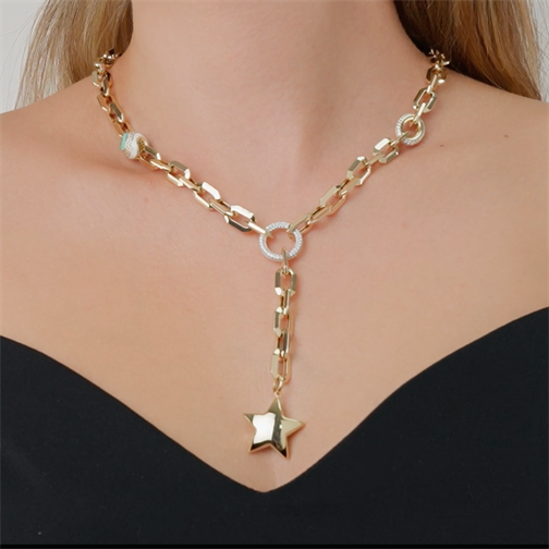Taşlı Halka Yıldız Kolye