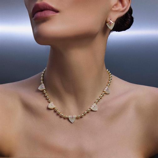 Taşlı Üçgen Formlu Küpe