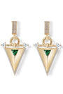 Zümrüt Taşlı Üçgen Sallantılı Altın Küpe